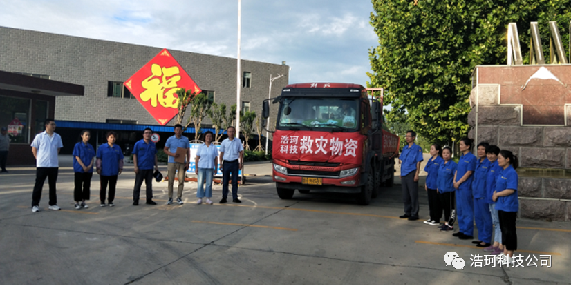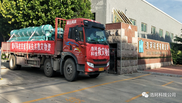 浩珂科技有限公司始终牢记使命与担当,时刻牵挂着受灾地区的情况。共捐助调拨物资20余万元,包括高强度土工布和土工管袋共万余平方,主要用于灾区的水利工程和大坝防渗工程,首批物资已从浩珂科技有限公司生产基地发出,于7月26日到达河南省鹤壁市。