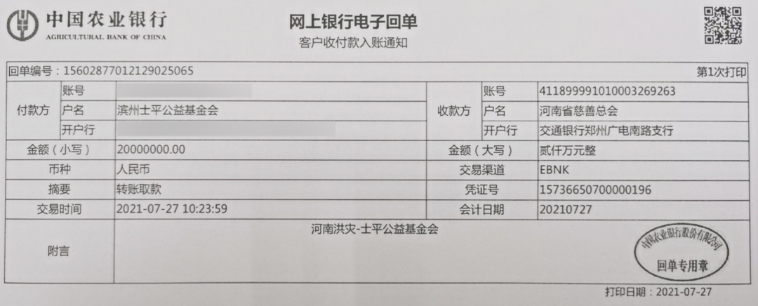 士平公益基金会心系所有受到此次汛情影响的人们,希望为河南灾区尽绵薄之力,携手共渡艰难时!7月27日,士平公益基金会向河南省慈善总会捐款2000万元,用于河南汛情的抢险救灾及灾后重建工作。希望通过捐款,协助受灾群众共克时艰。