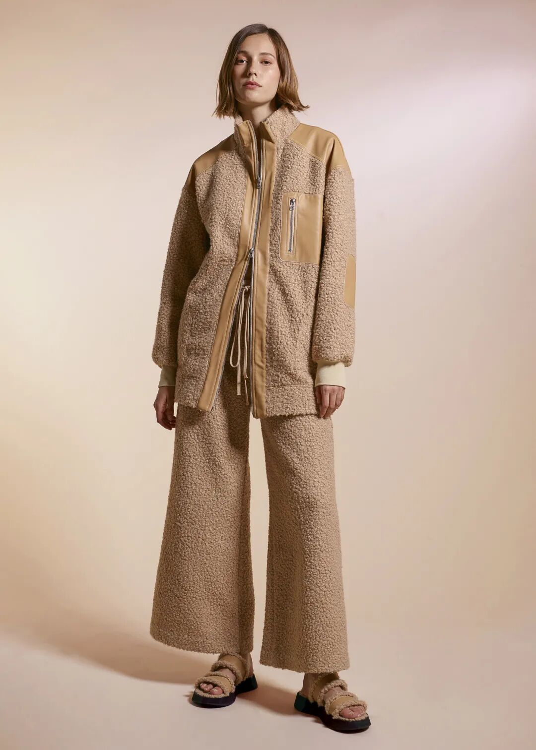 使用长毛绒泰迪抓绒和对比感平滑皮革,打造触感表面 (对比细节设计年同比增加了14%,占总类的16%)。