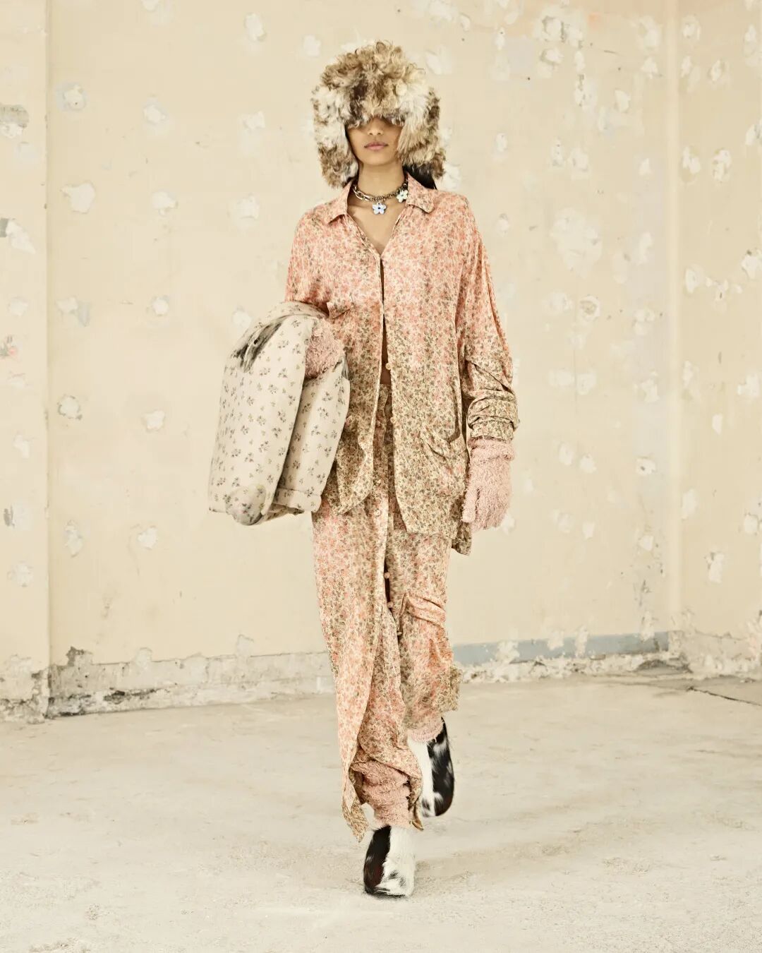 灵感源自睡衣装扮,休闲衬衫强调便于穿脱的超大版型,而碎花能为设计增添女人味。