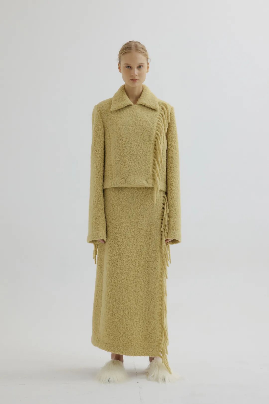 保持版型简约,用黄油黄和柔软纹理羊毛为套装注入全新现代感,赋予家居服优雅高级格调。