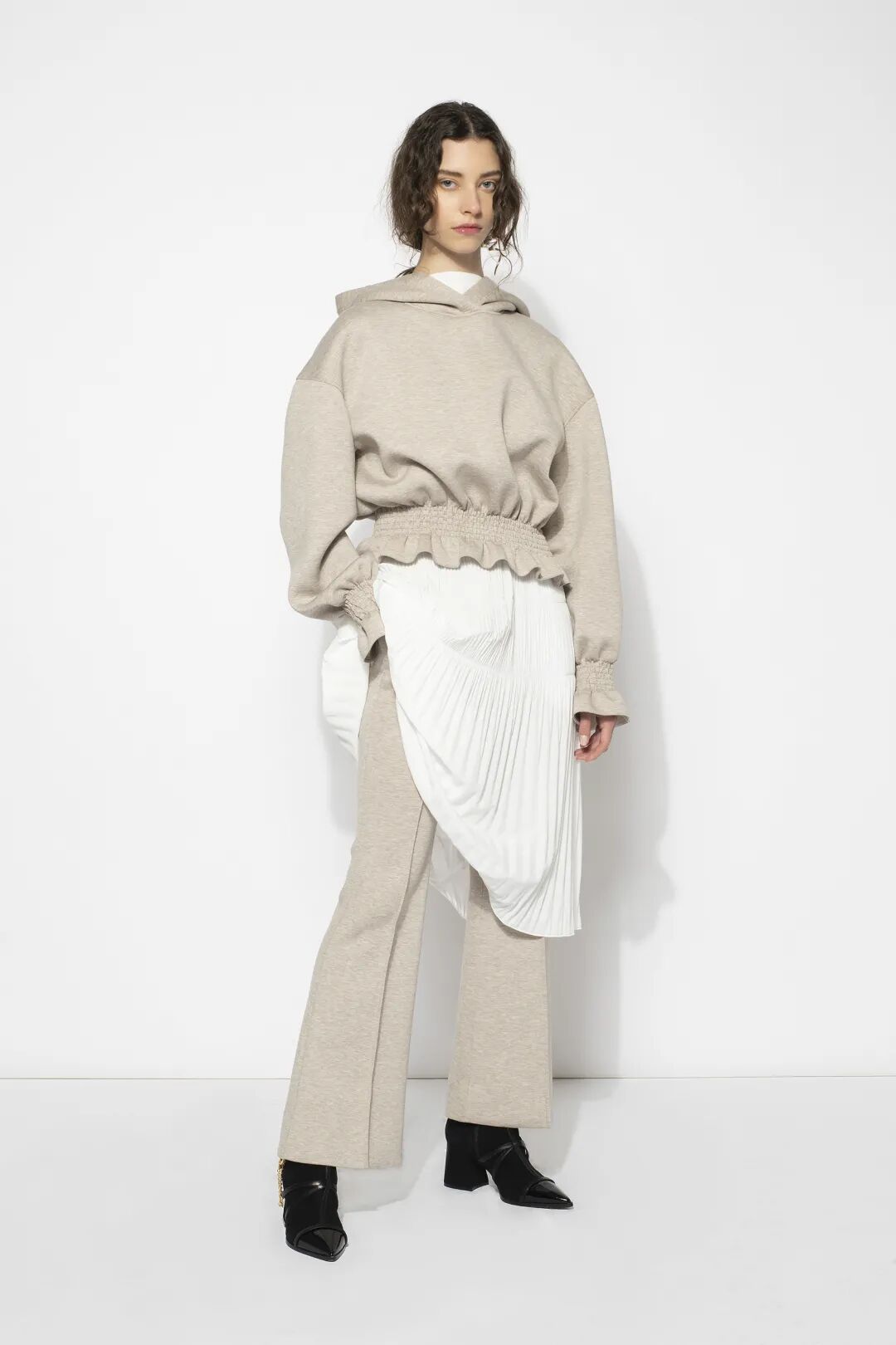 灰色回归,成为重要核心色,用灰配灰同色系造型打造高级成熟的外观,细腻褶皱纹理显出漫不经心的美。