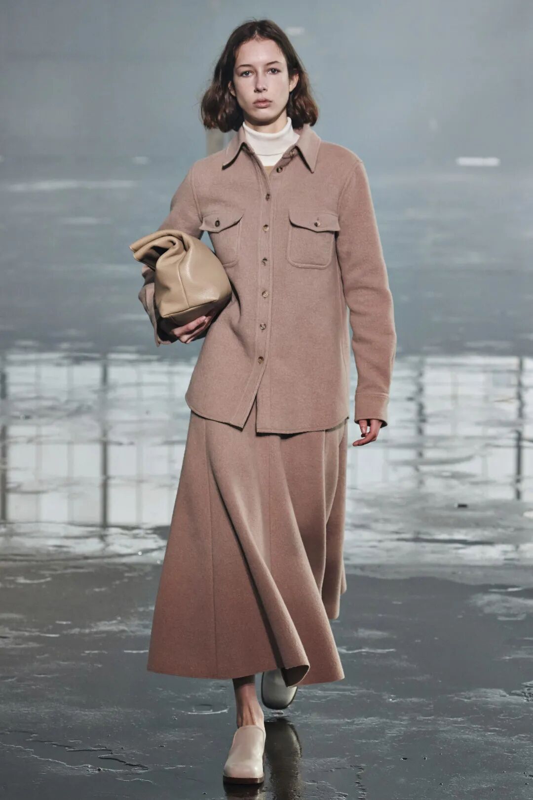 打造介于西装和家居服之间的混合风造型。使用中等厚度的优质法兰绒,搭配柔和中调色,打造带跨季感的高级设计。