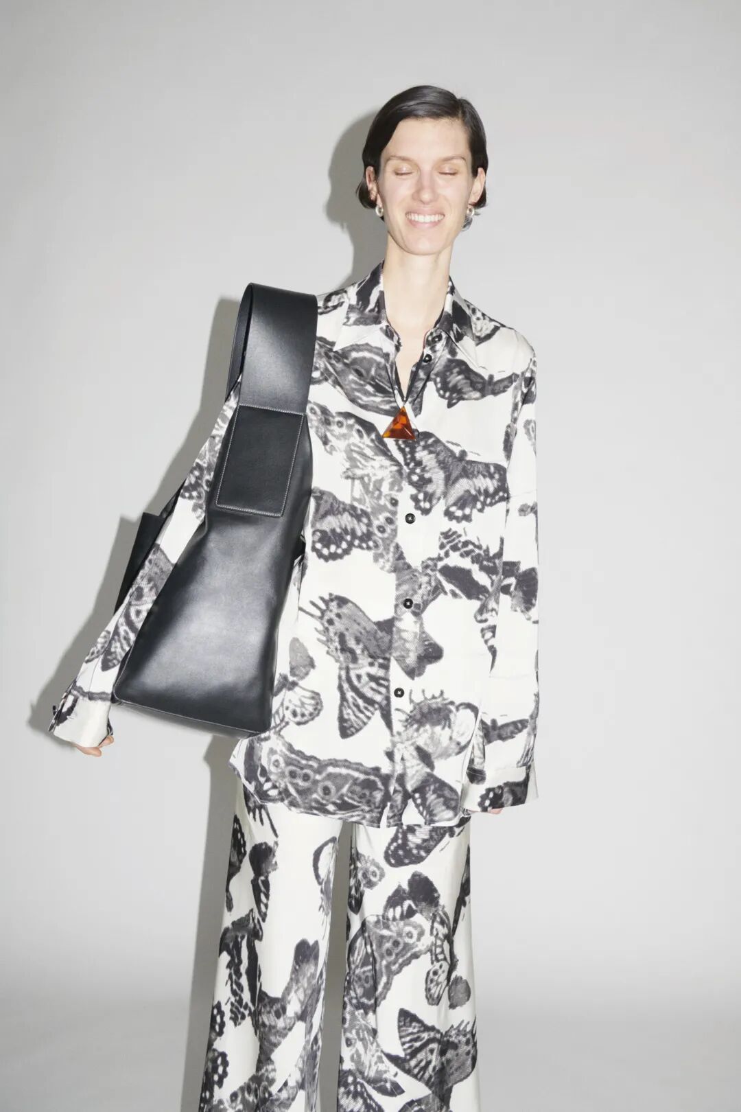 用奢华柔软真丝升级睡衣风服装,搭配代表灵性精髓和冥想叙事的蝴蝶印花。