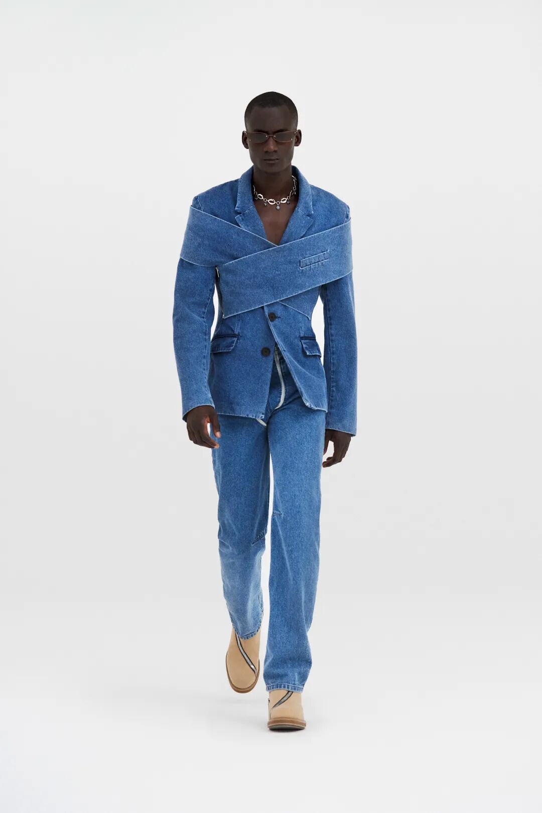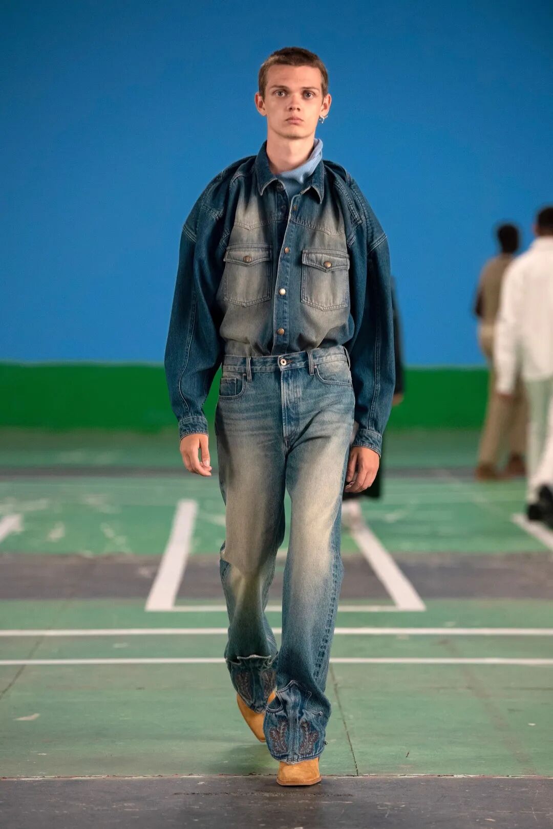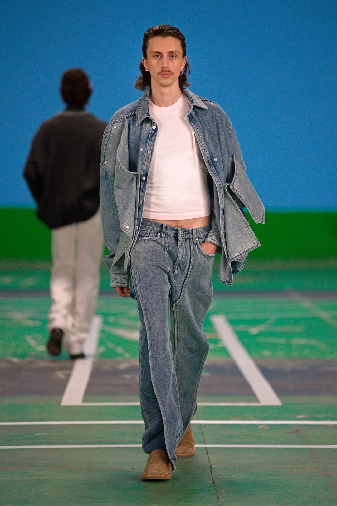 丹宁面料被许多设计师钟爱,其百搭耐磨的品质也被打上了实用的标签。此次,除了Y/Project、Maison Mihara Yasuhiro、Facetasm出现了从上到下都是丹宁面料外,还有许多品牌加入了单宁的元素,为Look增添活力。