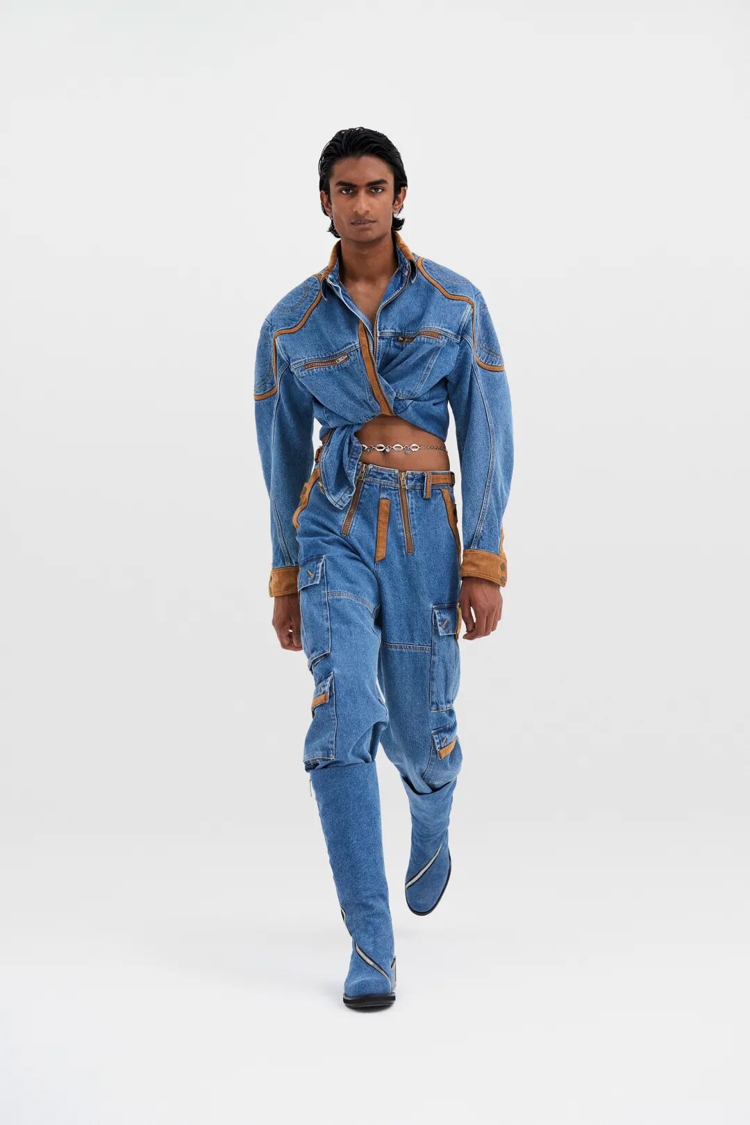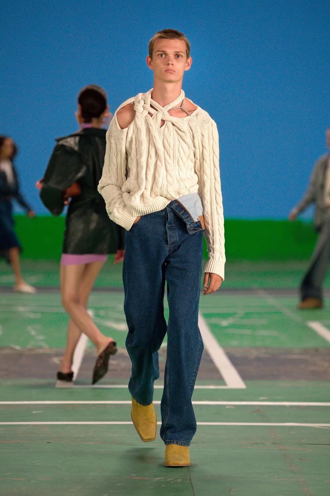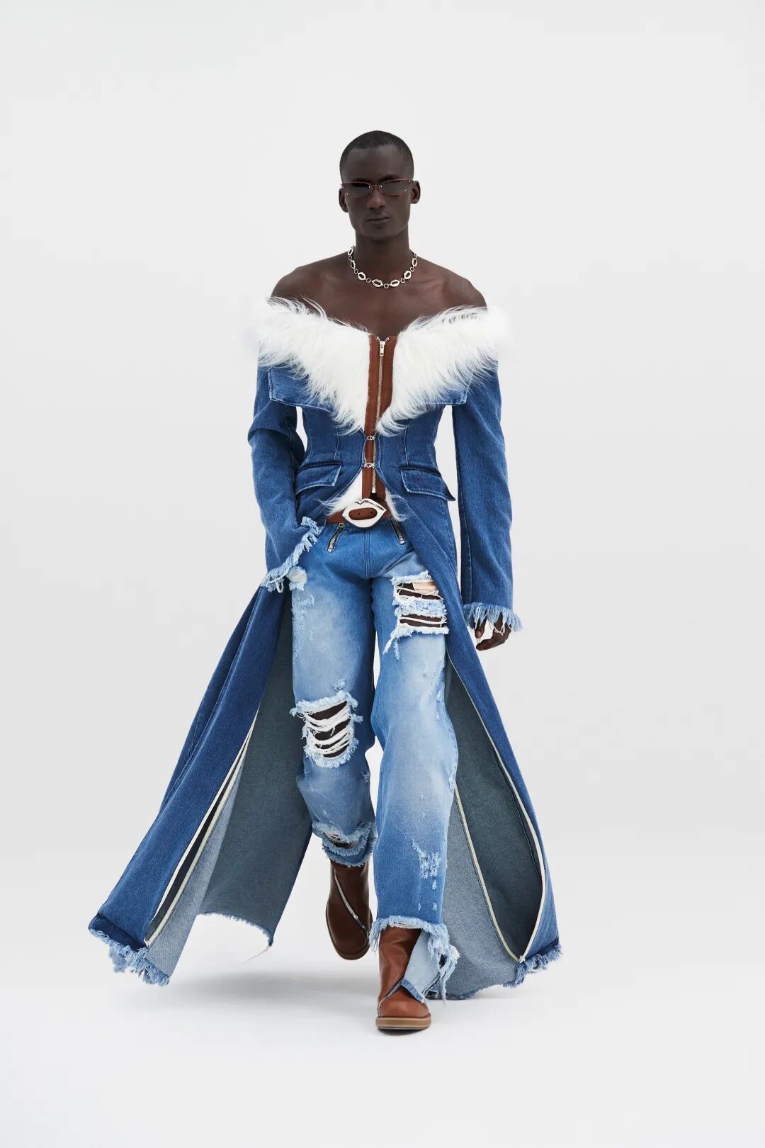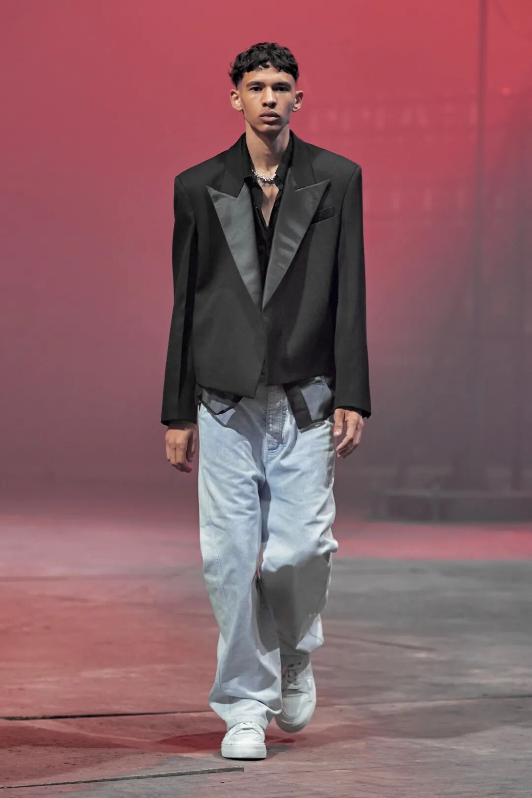 丹宁面料被许多设计师钟爱,其百搭耐磨的品质也被打上了实用的标签。此次,除了Y/Project、Maison Mihara Yasuhiro、Facetasm出现了从上到下都是丹宁面料外,还有许多品牌加入了单宁的元素,为Look增添活力。