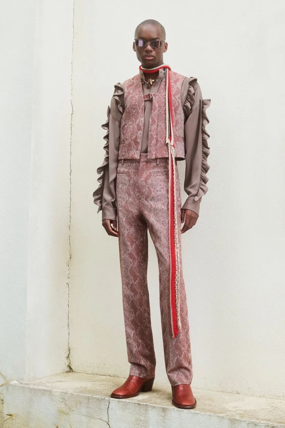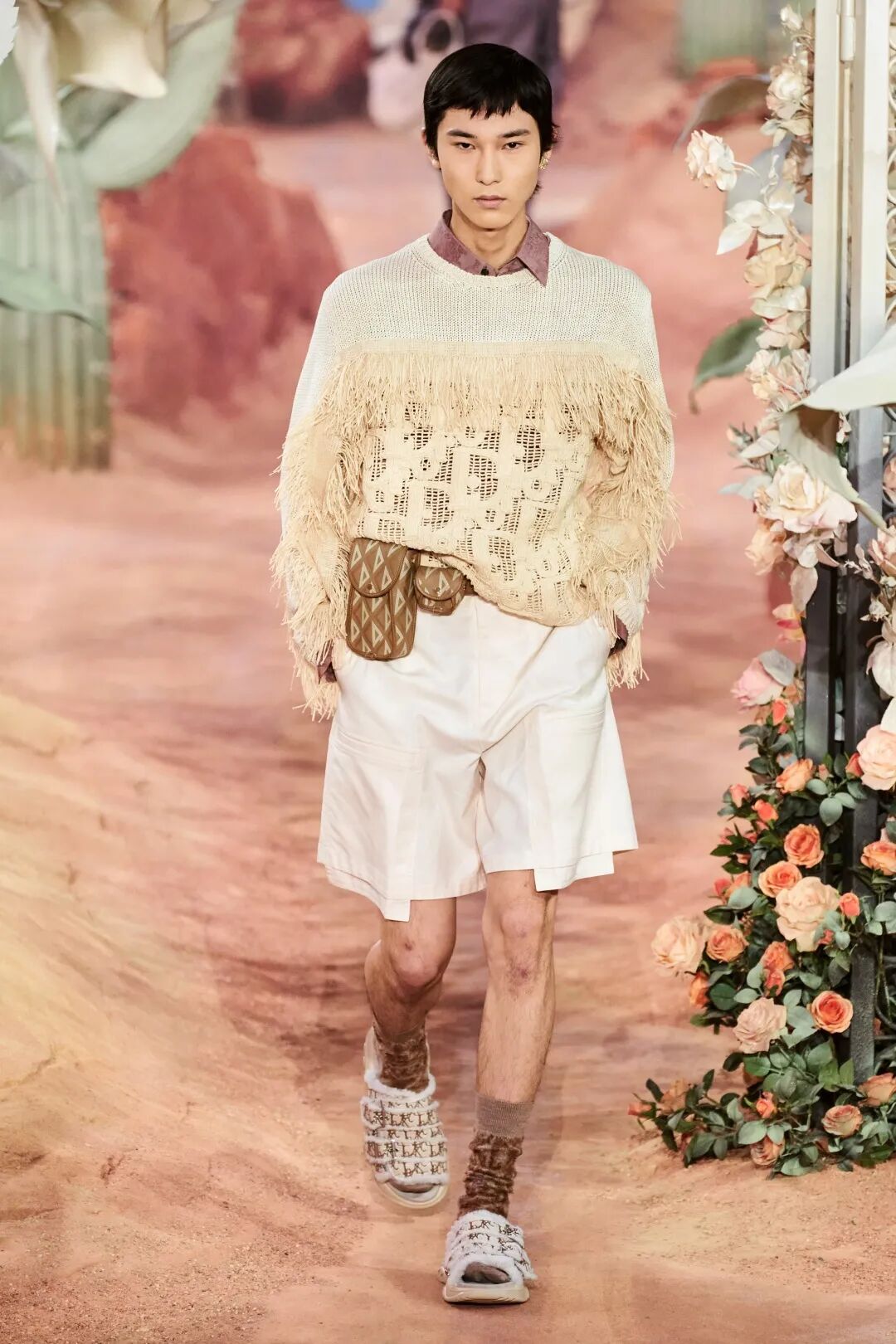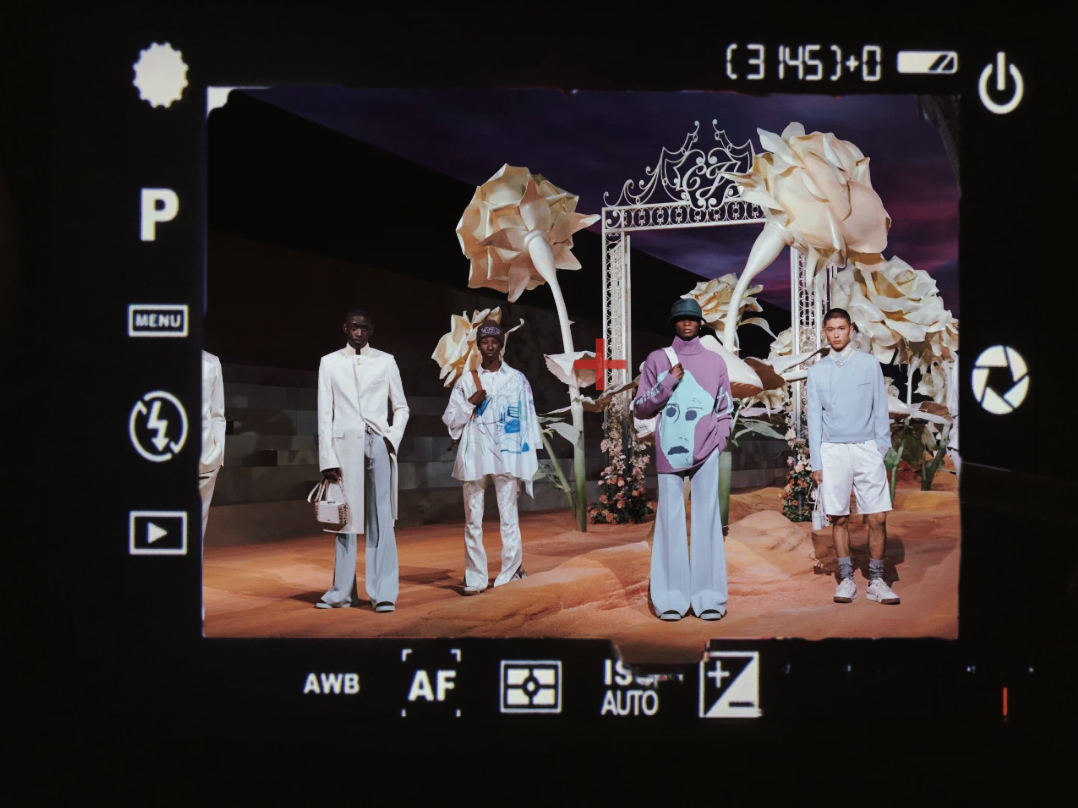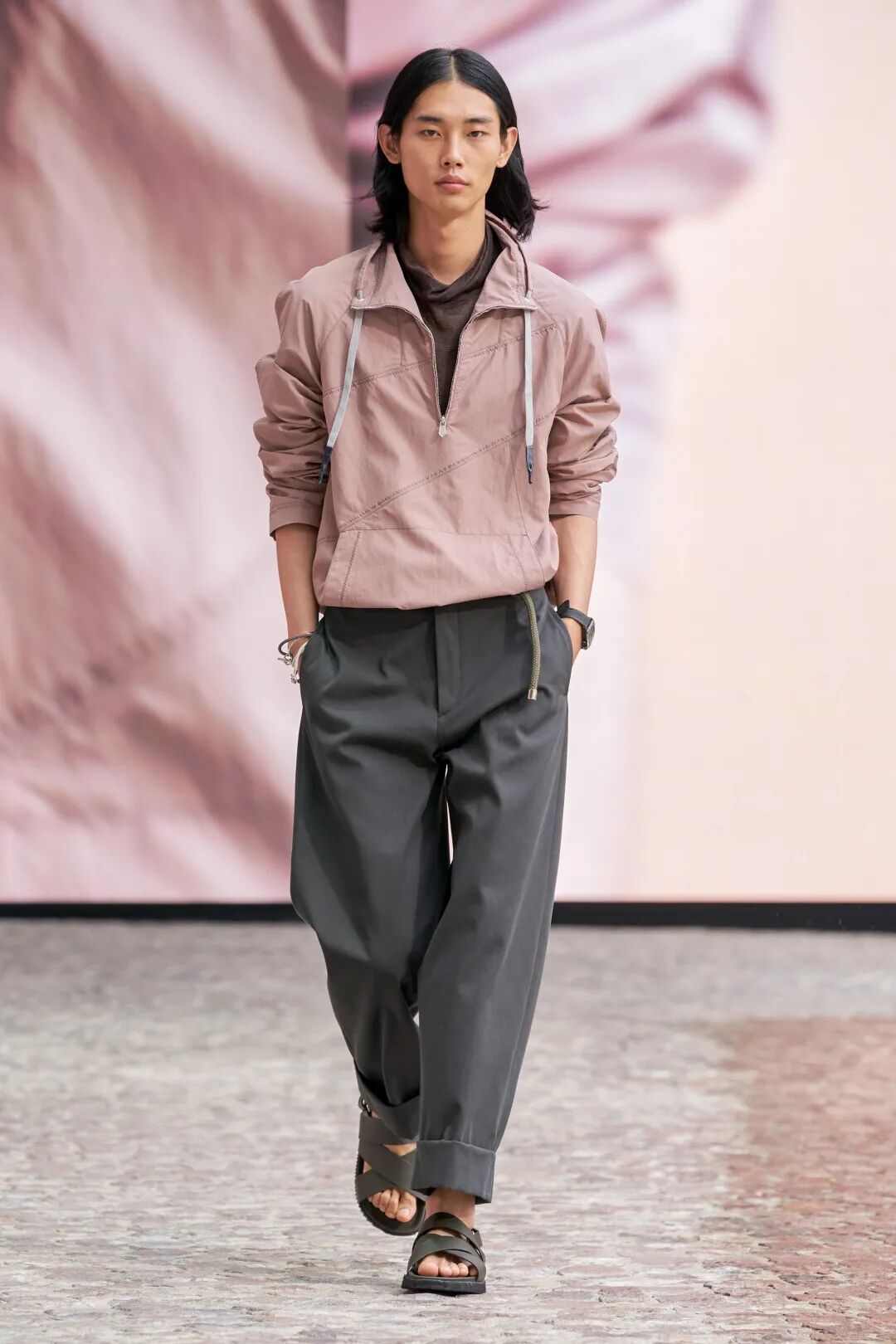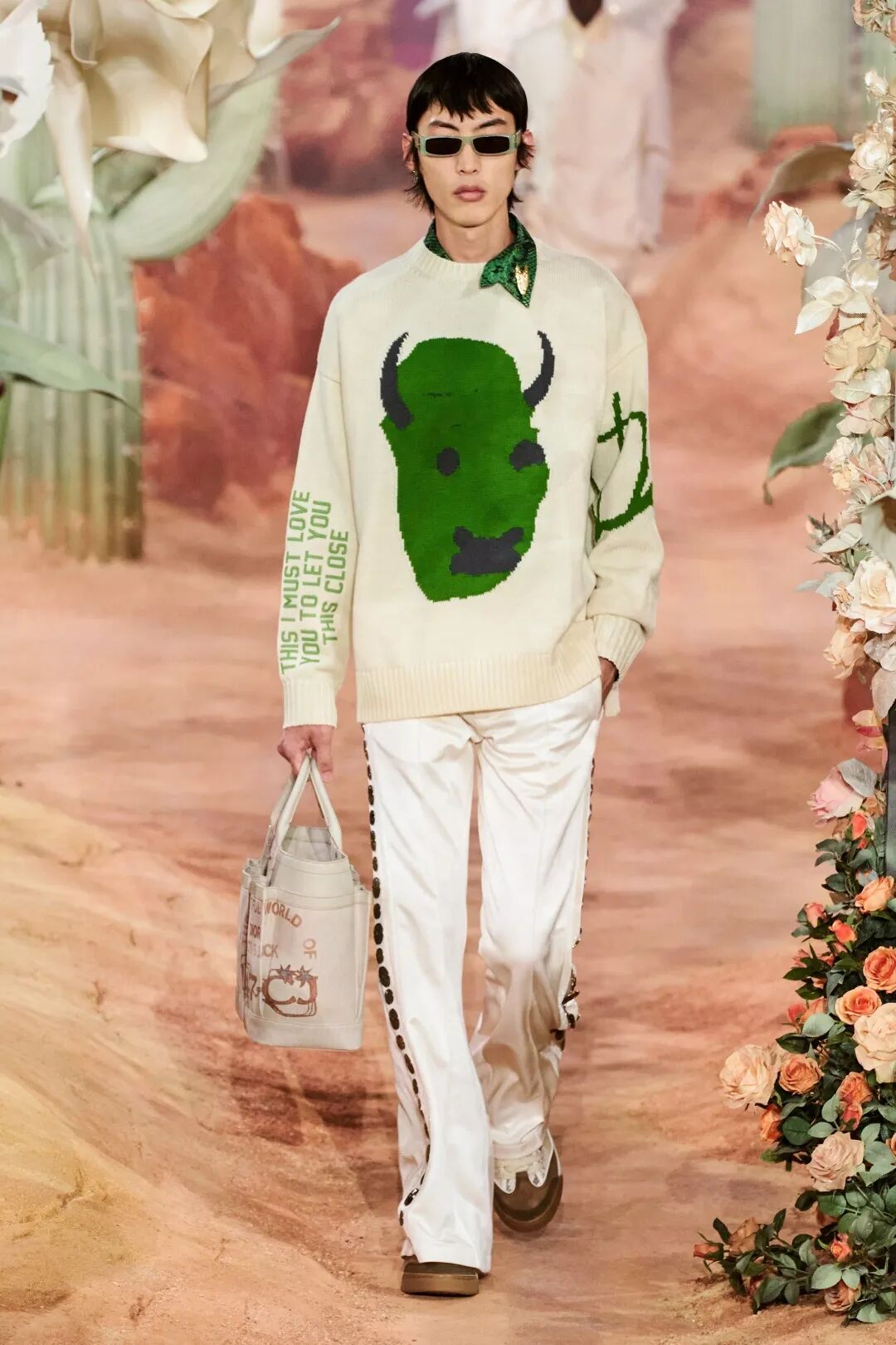 从秀场布置到服装设计,整个2022男装都充满着这梦幻的模样。女性化的、柔化的调调让许多设计师着迷,因此Louis Vuitton、Jil Sander、Dior、Loewe不约而同选择了粉色。不同的明度与纯度也让粉红泡泡散发着不同的光芒。