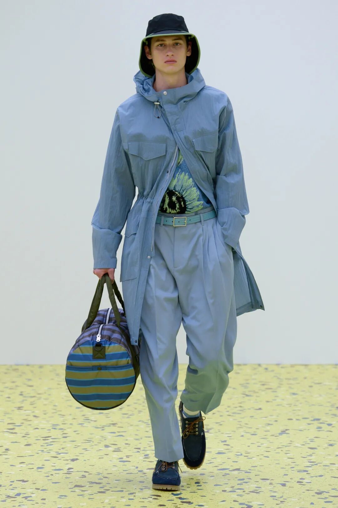 疫情之下,功能性的崛起让面料与服装的机能性得到了重视,此次借鉴雨衣还让一众设计增添了未来感。就是还不知道雨衣的透气性和防晒性怎么样呢?!