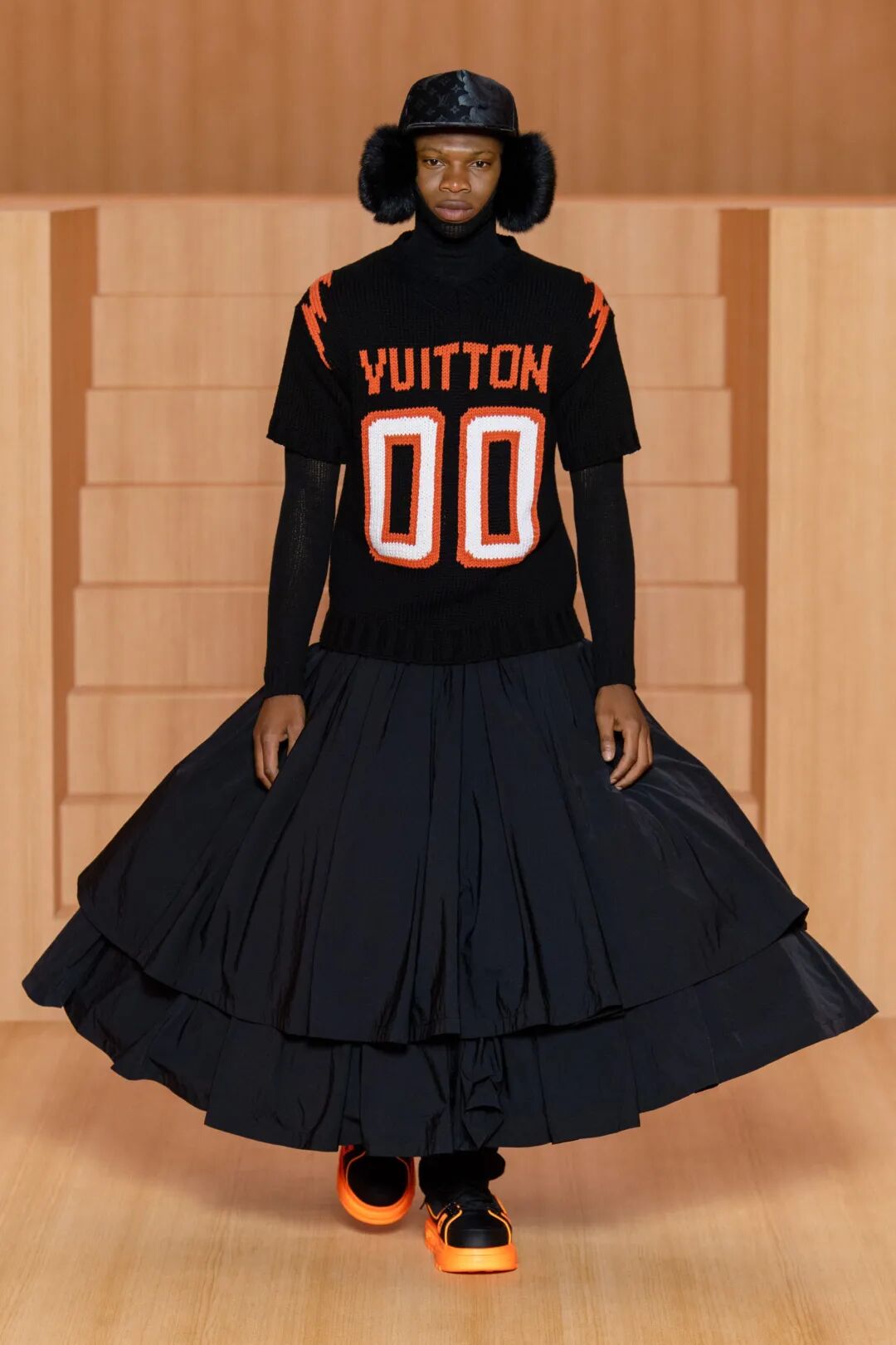 顺应着泛性别主义的流行趋势,女装的元素也出现在男装之中。此次男装中出现最明显的就是出现了裙装。无论是百褶裙,还是蓬蓬裙,高大的形象之中蕴藏着带有冲突的美感。