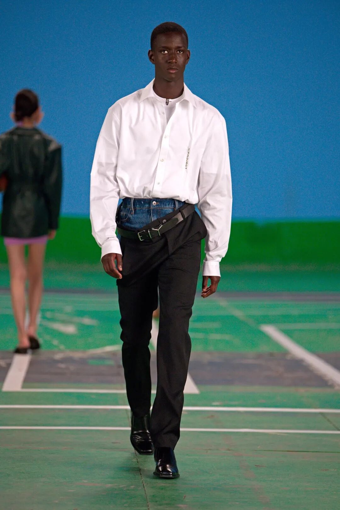 男装中又将21世纪10年代流行的“V”型图案流行了回来,然而不同的设计师,处理的方式有所不同,Louis Vuitton在V中表现着运动,Jil Sander则用极简的设计风格在视觉上展现着沉静。