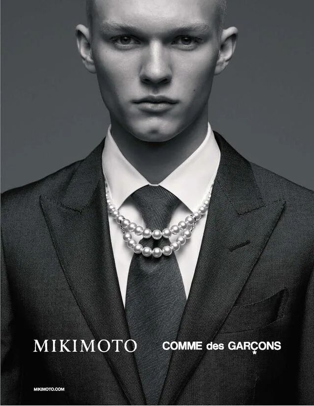 今年,珠宝品牌Mikimoto就与川久保玲的Comme des Garçons 合作推出一系列男士珍珠首饰入局男性珠宝市场,主题也鲜明的选择了“无性别(Genderless)”,希望男士们放下对珍珠的“性别成见”。