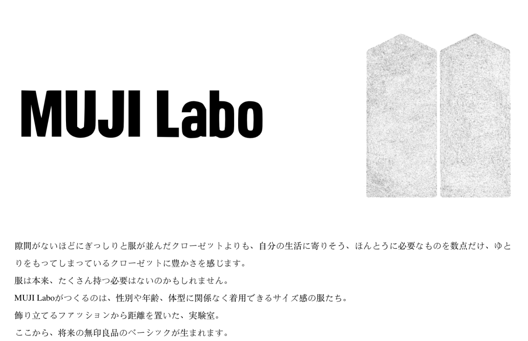 在该品牌的介绍中写道:“MUJI Labo 制作的衣服不分性别、年龄或体型,男女通穿。这里远离装饰时尚的实验室。从这里,将诞生未来的MUJI”。
