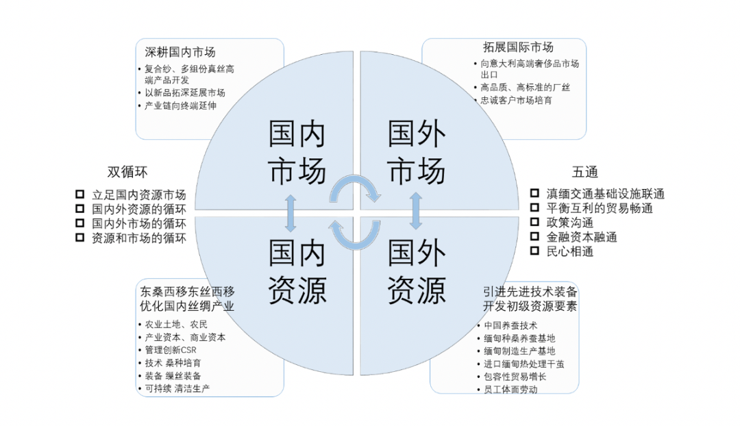 图1 云南德宏州茧丝绸产业的内外(资源和市场)双循环模式