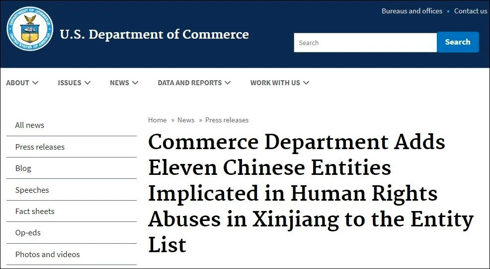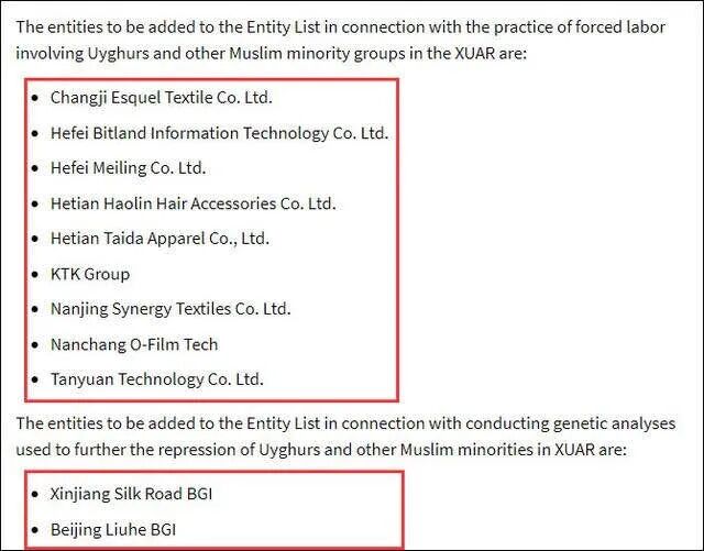 2020年7月20日,美国商务部工业和安全局(BIS)宣布将11家中国公司加入“实体清单”。