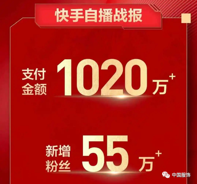 今年6月,海澜之家在快手的品牌自播整月支付总额达到1020万元,新增粉丝55万人。据悉,目前海澜之家在快手的日均支付额达到30万元,这场自播探索已逐渐走上正轨。