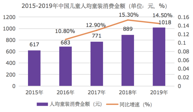 根据相关统计数据显示,近5年来,我国童装行业市场规模呈波动增长趋势。在优生优育理念的不断普及和强化的背景下,中国儿童人均童装消费支出将会持续上升,为童装行业市场规模继续扩大提供支撑。