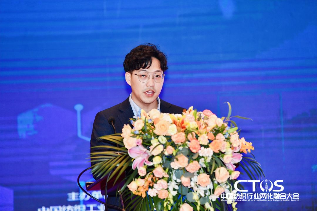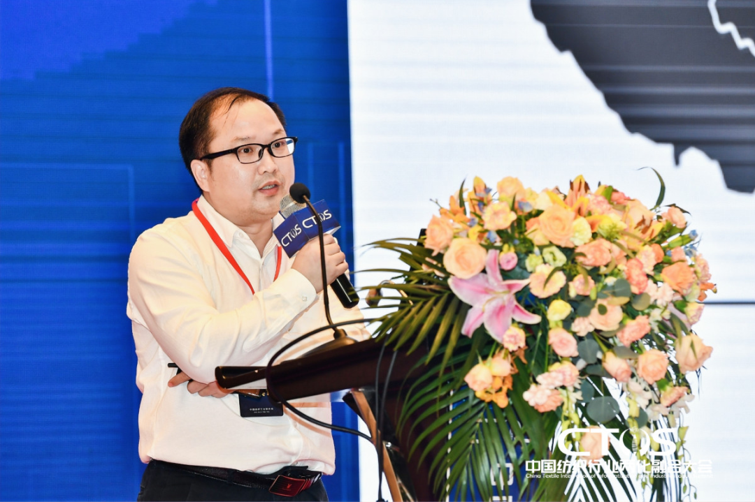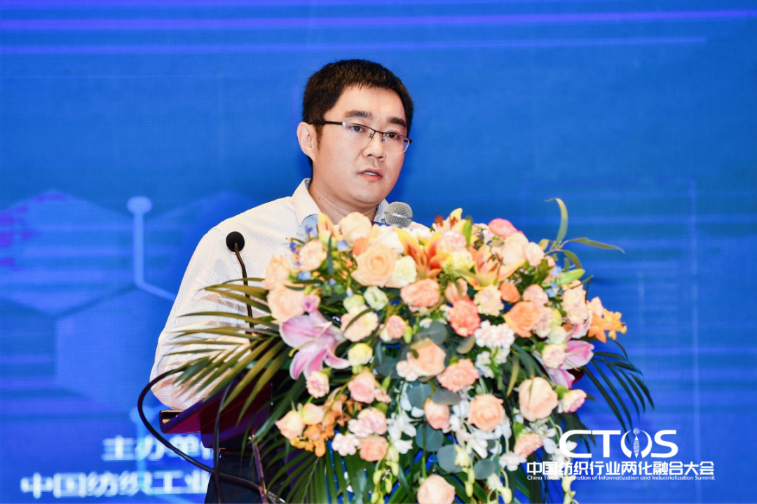 中国纺联信息化部两化融合推进处副处长刘斌分享了《信息化建设赋能纺织企业数智化转型》经验。他表示,企业信息化建设主要经历信息数字化、生产流程数字化、业务数字化、管理智能化四个发展阶段。他通过多个案例的分享,介绍了企业主要从销售、采购、生产三个方面来实现整体的智能化管理提升。