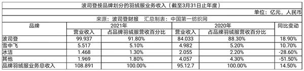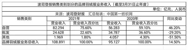 波司登国际控股有限公司(以下简称“波司登”)6月23日晚间披露截至2021年3月31日止的2020年年报,报告期内,公司实现营业收入135.2亿元,同比增长10.9%;股东应占溢利17.096亿元,同比增长42.1%。