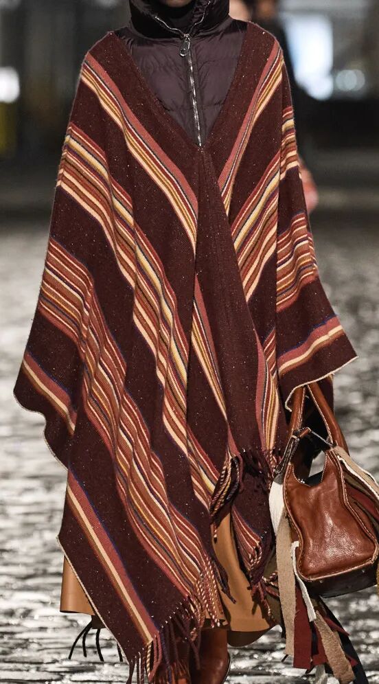 备受追捧的#blanketdressing毯式造型现已推动毯式#poncho斗篷回归市场。Chloé外套融入了#softvolume柔软量感填料细节,堪称户外主题的理想之选。