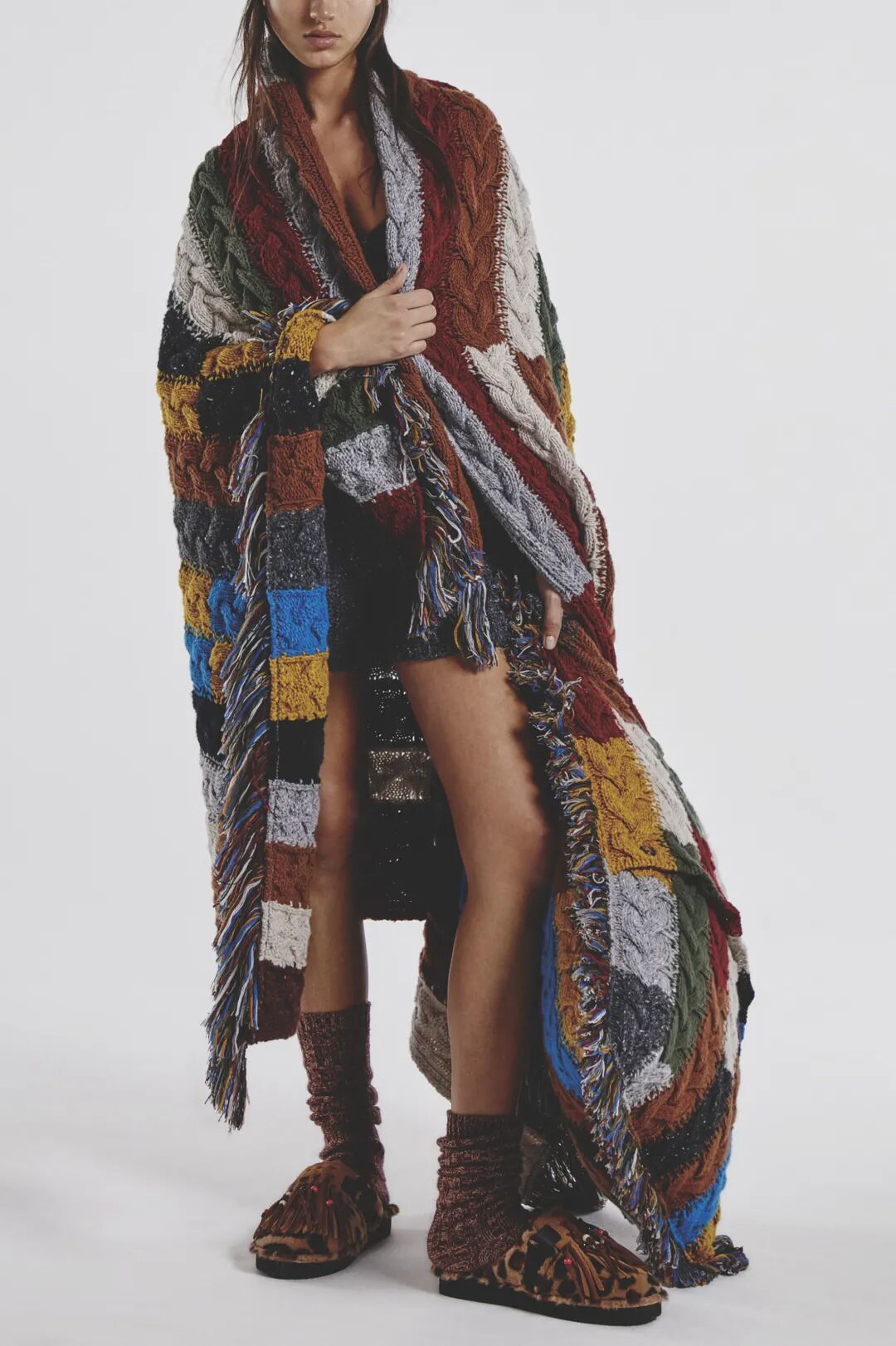 #Cosy温暖面料与#handcrafted手工细节均是设计要点,毯式造型则结合了日益流行的#poncho斗篷与围裹设计。