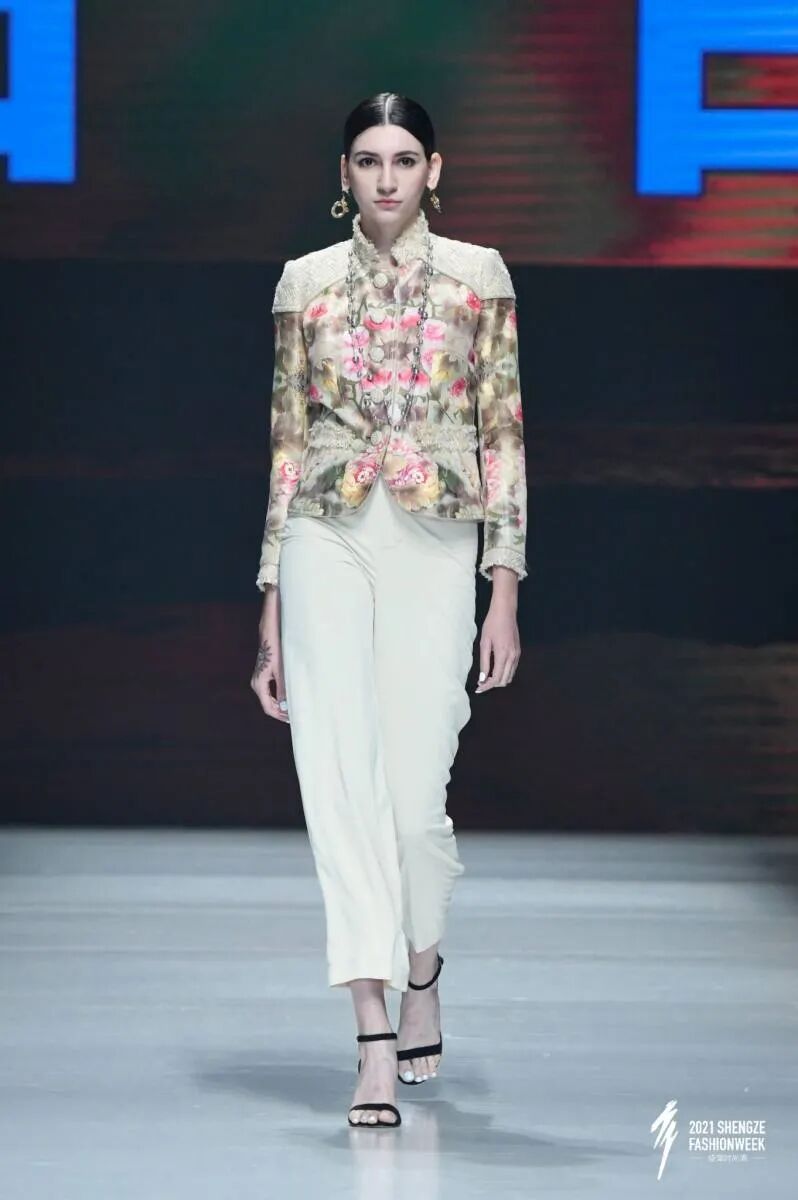 本次发布秀蓝伯吉纳的主题为“精致生活,精致人生,放飞自我。无论是职业定制套装的精致细节,还是轻薄飘逸的优雅裙装,在表达女性温婉气质的同时,也传递着精致、独立的处世姿态。设计师崔游通过大面积的印花,在花哨与稳重中找到平衡,使舒适而精致的质感跃然其中,为新时代女性的穿着提供了更为广阔的想象空间。