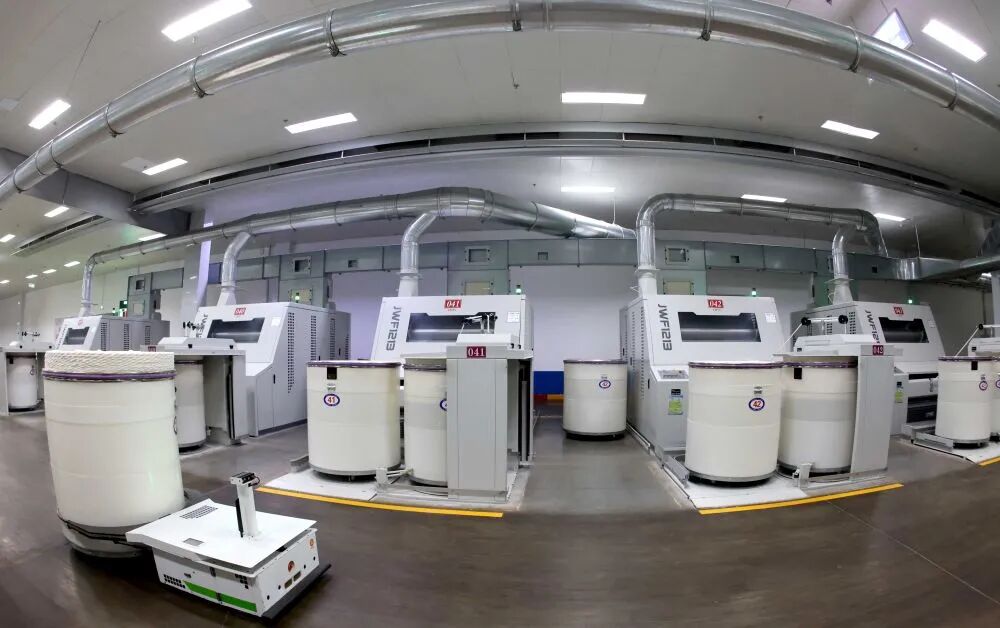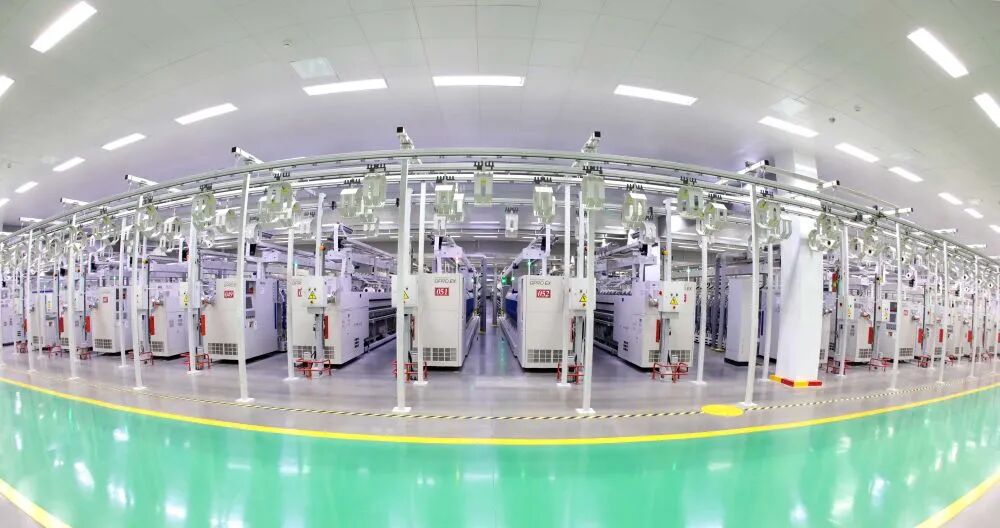这是位于山东省邹平经济开发区的魏桥纺织绿色智能化第三分厂后纺车间自动络筒及智能运输系统(5月18日摄)。