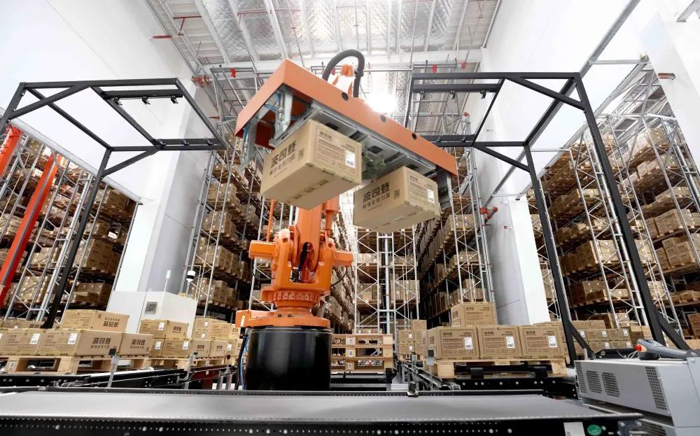 机械手在位于江苏省常熟市的波司登智能配送中心分拣货物(5月24日摄)。