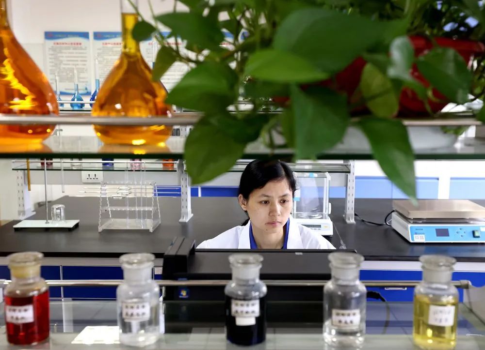 在位于浙江省桐乡市的桐昆集团恒通新纤维研究院,一名化验员在利用液相色谱仪进行成分分析工作(5月26日摄)。