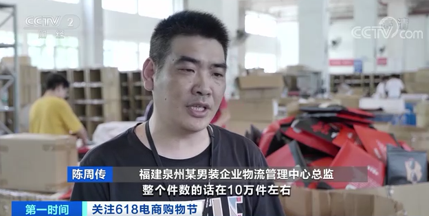 福建泉州某男装企业物流管理中心总监陈周传:“1到3日差不多有3万多单,整件数在10万件左右。16日到18日,这一波约有15万件到18万件。”
