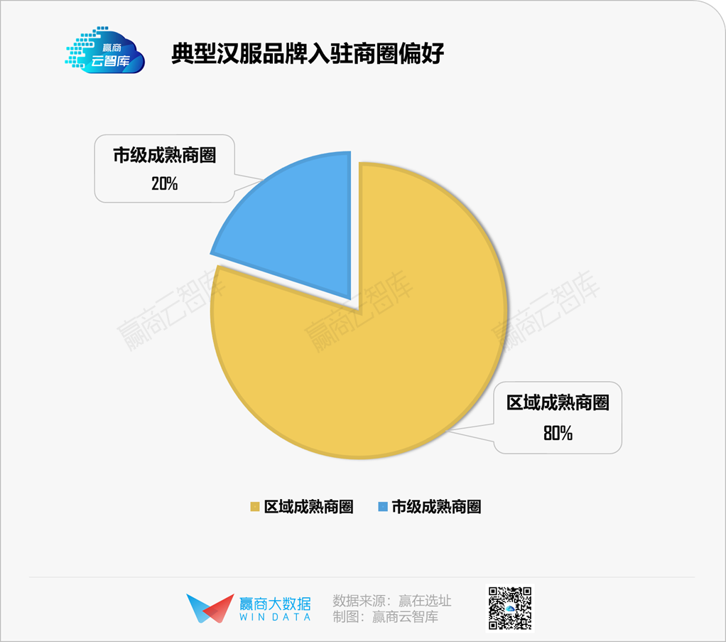 商圈偏好上,典型汉服品牌入驻区域成熟商圈占比达80%,这些商圈人流稳定、商业业态成熟、目标客群集中度高。