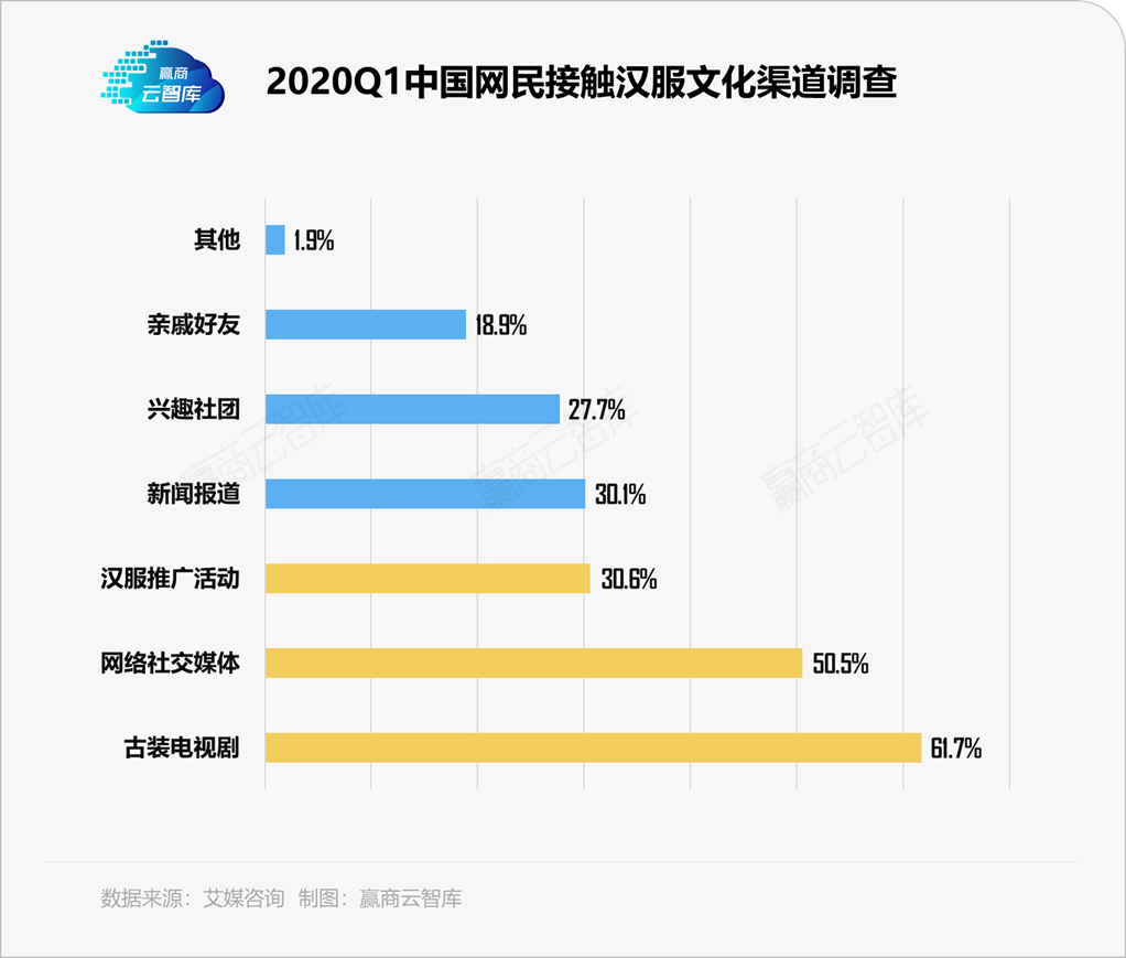 另据汉服文化传播渠道调查显示,古装剧引领的古风审美令汉服文化关注升温,抖音、微博、B站等社交媒体以及汉服推广活动也助力汉服破圈。