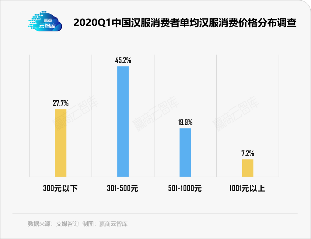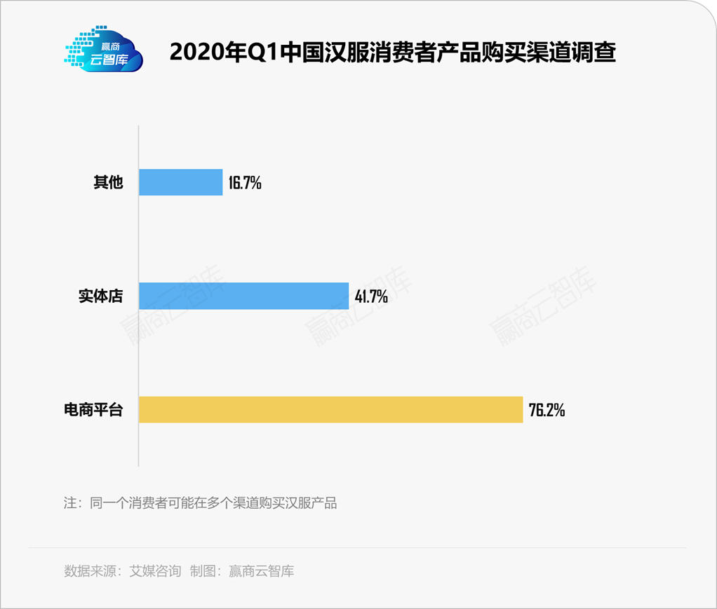 艾媒咨询数据显示,2020年汉服消费者虽以电商为主要购买渠道,但线下实体店分流占比高达41.7%,布局潜力大。