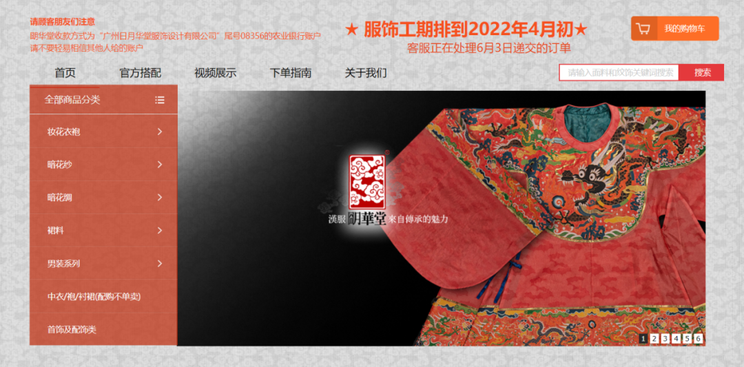 高端定制款的稀缺性,一边为消费者所追捧,另一边也被诟病为“饥饿营销”。据公开报道,明华堂从下单到拿到成衣要等一年左右。截至6月3日,明华堂官网显示的服饰工期已经排到2022年4月初。