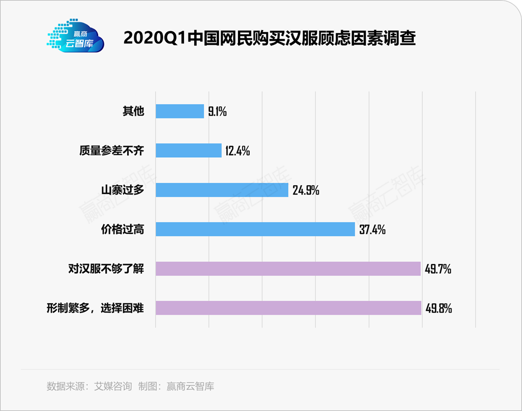 艾媒咨询调查显示,2020年中国网民购买汉服顾虑因素中,“形制繁多,选择困难”一项高达49.8%。一件衣服的门道之深,不由让入圈新人发出灵魂呐喊:能穿吗?穿哪件?怎么穿?