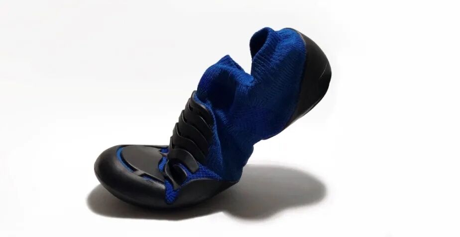 脚面造型尝试“鱼排骨”式的波状结构,保证了灵活性与保护性的统一,以缓冲航天员运动时产生的碰撞,脚部前端与后部设计饱满,不仅使穿着上更加舒适,而且造型更为立体。最终色彩上采用“深空蓝”与黑颜色结合的方案,黑色体现了时尚、科技的因素,同时与舱内工作服的蓝色相匹配、实现视觉搭配上的和谐感。