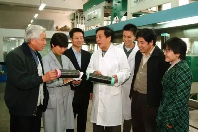 潘鼎教授(左四)团队在碳纤维一线开展研究
