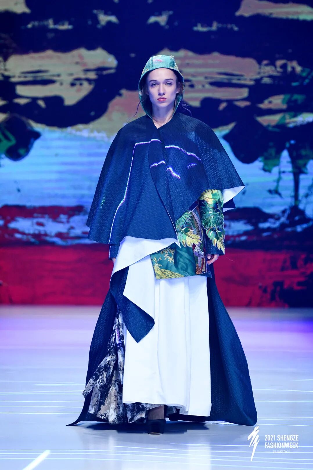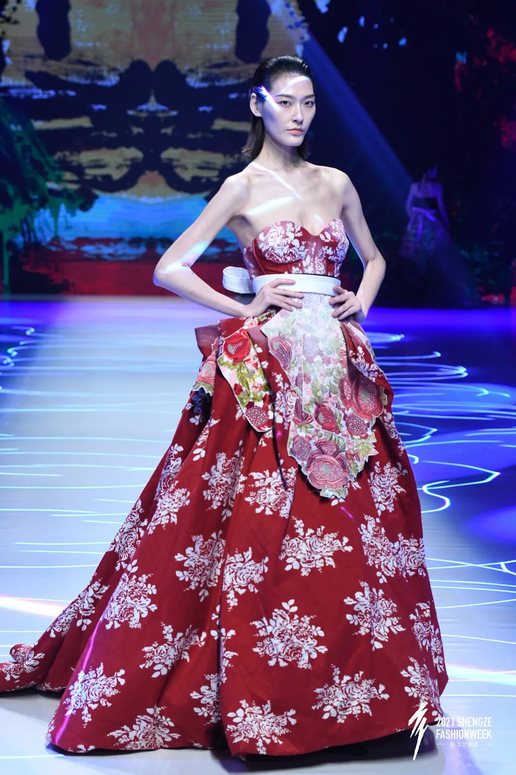 开幕式后,东方杯·2021中国女装设计大赛决赛精彩上演。本次总决赛入围选手与盛泽面料企业充分对接,很多选手在设计中运用不同地区和不同时代的流行元素,呈现盛泽面料的独特性。