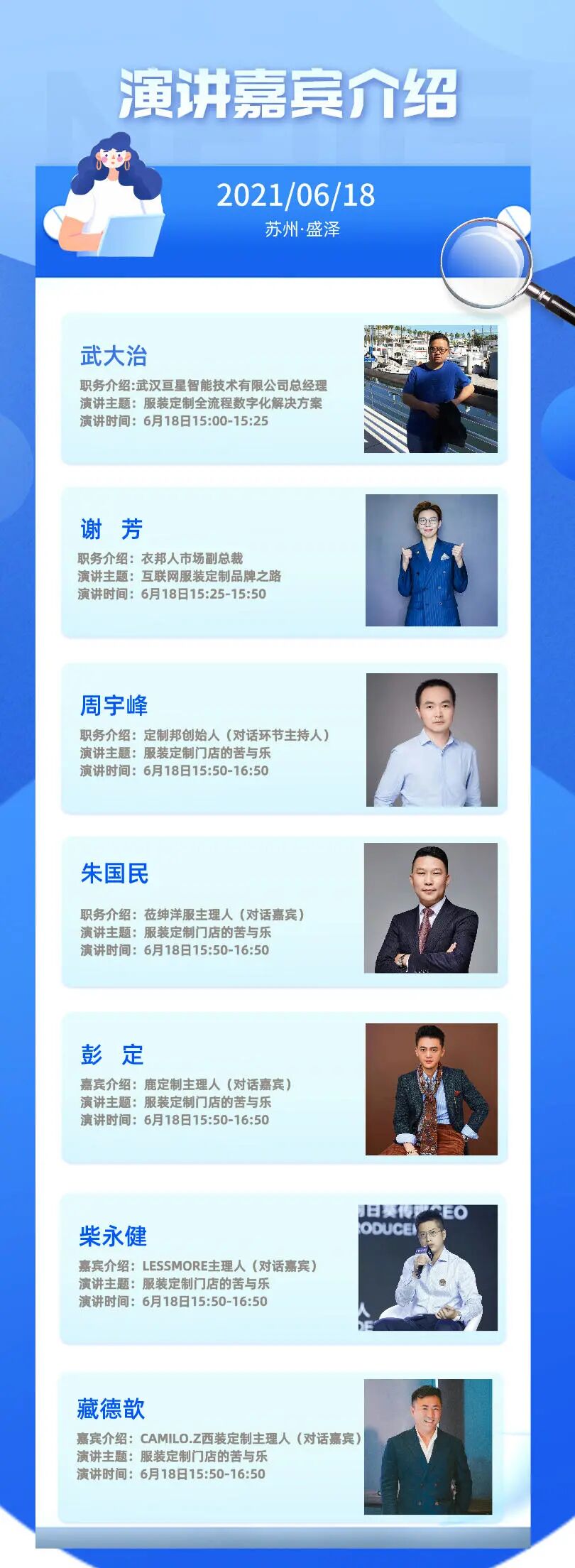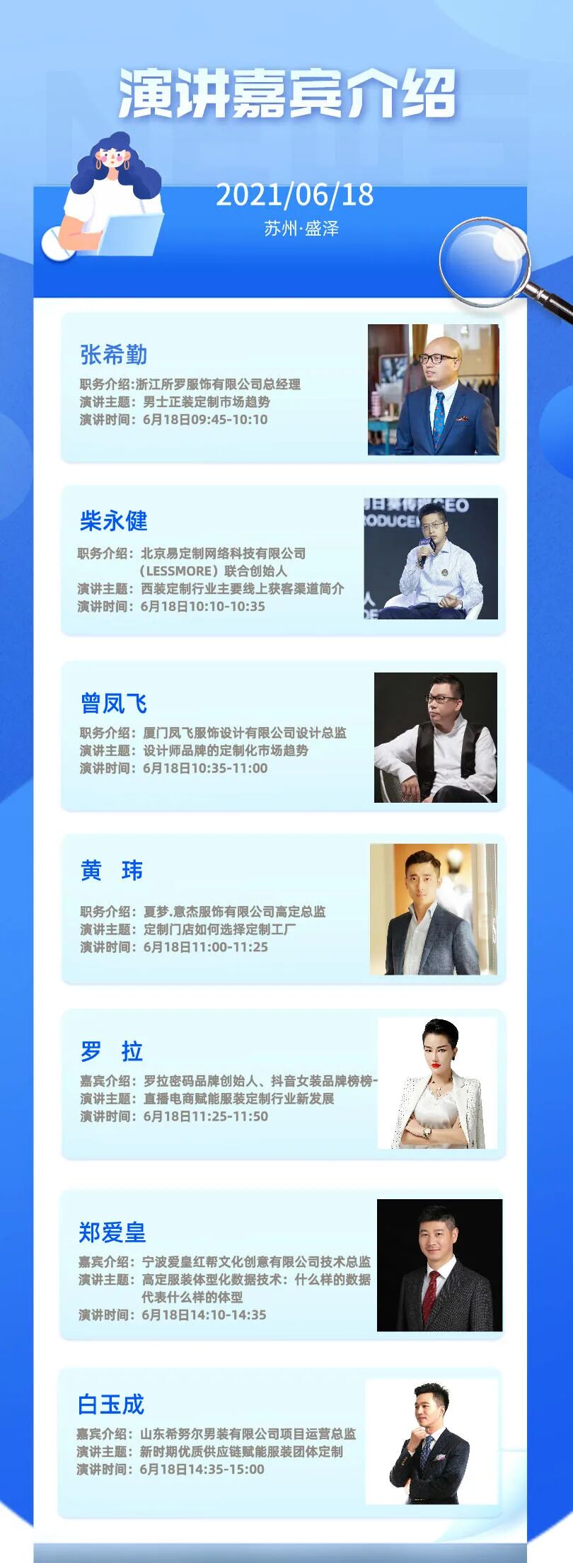 届时,全国各地具有代表性的定制品牌、加工、相关供应链企业负责人以及院校专家将齐聚盛泽,相约赴会,定制大咖们将在论坛和年会上深入探讨“十四五”时期服装定制领域发展现状、高质量发展路径,并分享宝贵经验。