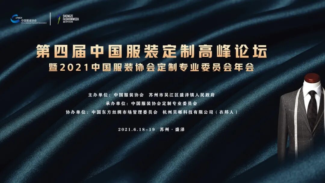因势而动,顺势而来,2021年定制人再迎年度盛会。2021年6月18-19日,中国服装协会将于苏州市吴江区盛泽镇举办以“数字赋能•匠心定制”为主题的“第四届中国服装定制高峰论坛暨2021中国服装协会定制专业委员会年会”、“定制之夜”服装定制品牌联合发布秀”、中国服装行业“9.9定制周”筹委会第三次会议、盛泽企业现场参访与合作对接等活动也将同期举办。