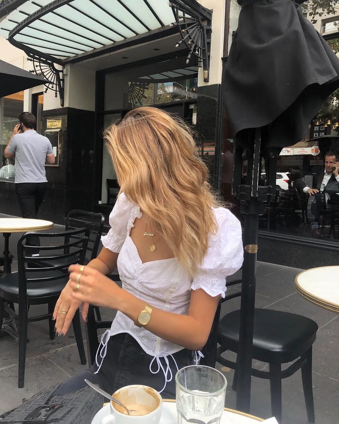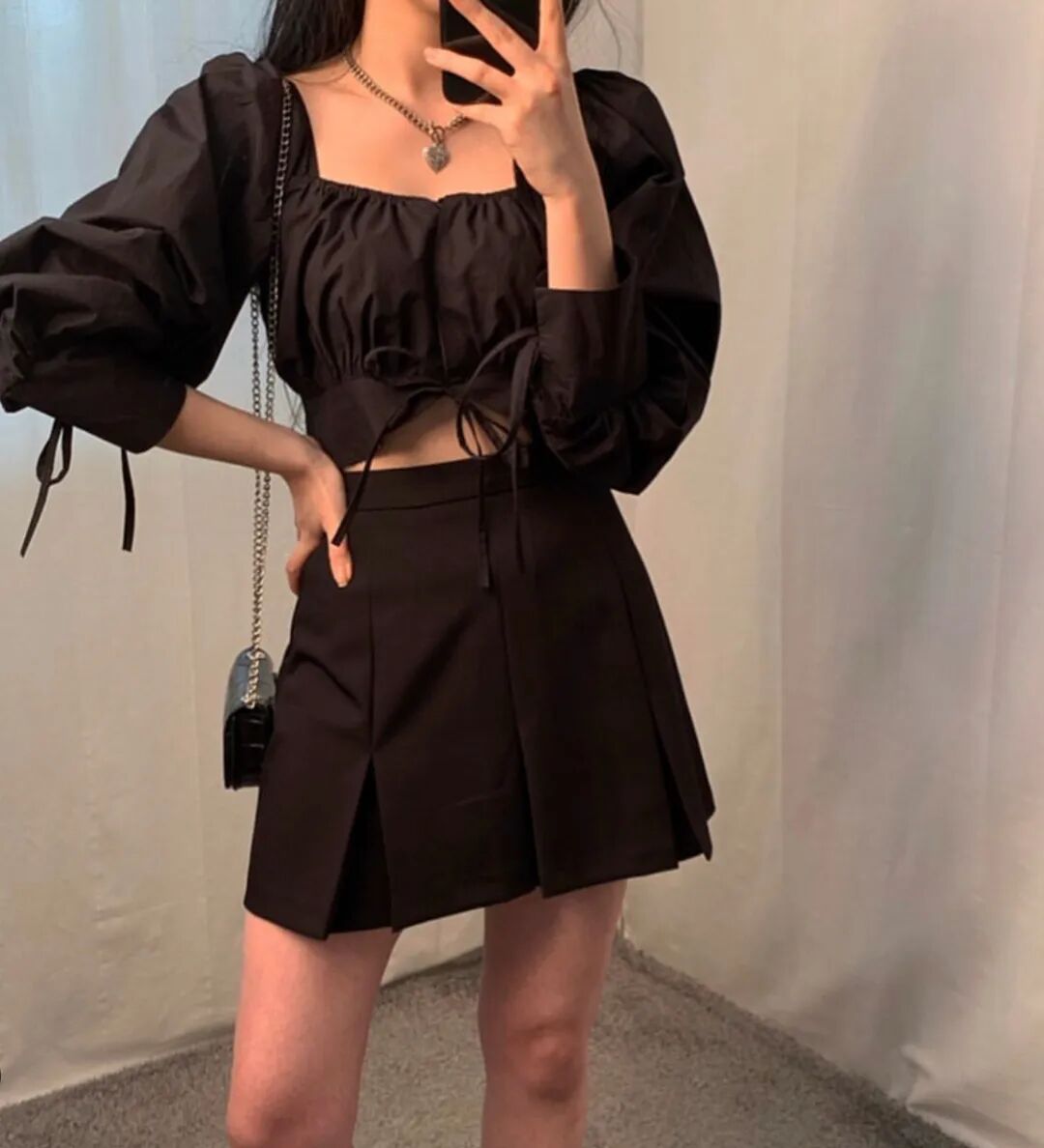 all black真的又甜又酷,法式衬衫抽绳、褶皱、泡泡袖的设计及时一身黑也不会显得无趣。