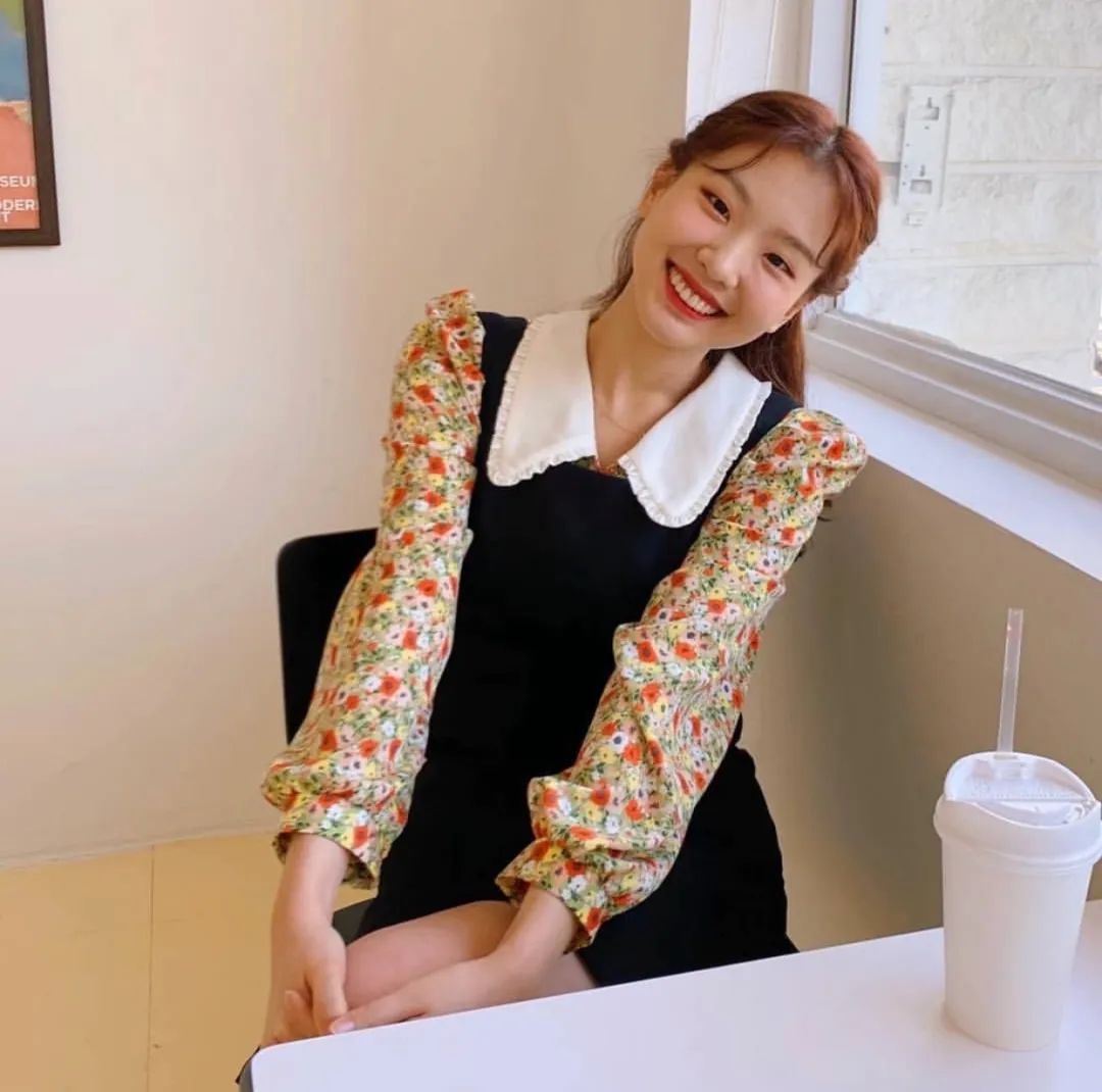 法式碎花衬衫,作内搭配上一条背带裙,一点不会觉得老气,满满青春的感觉。