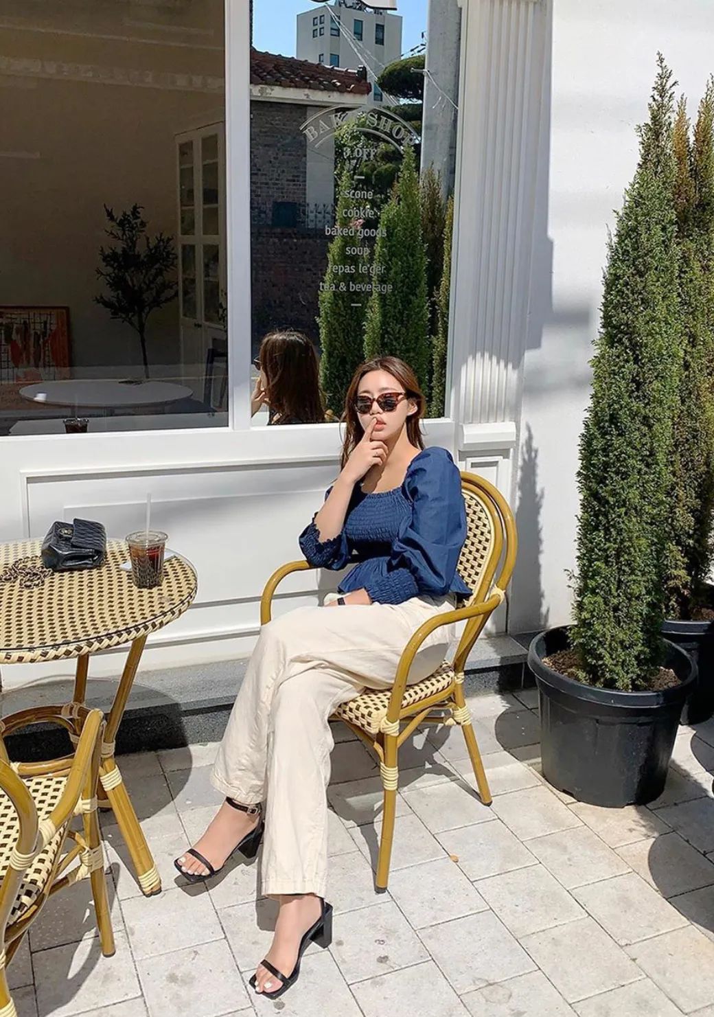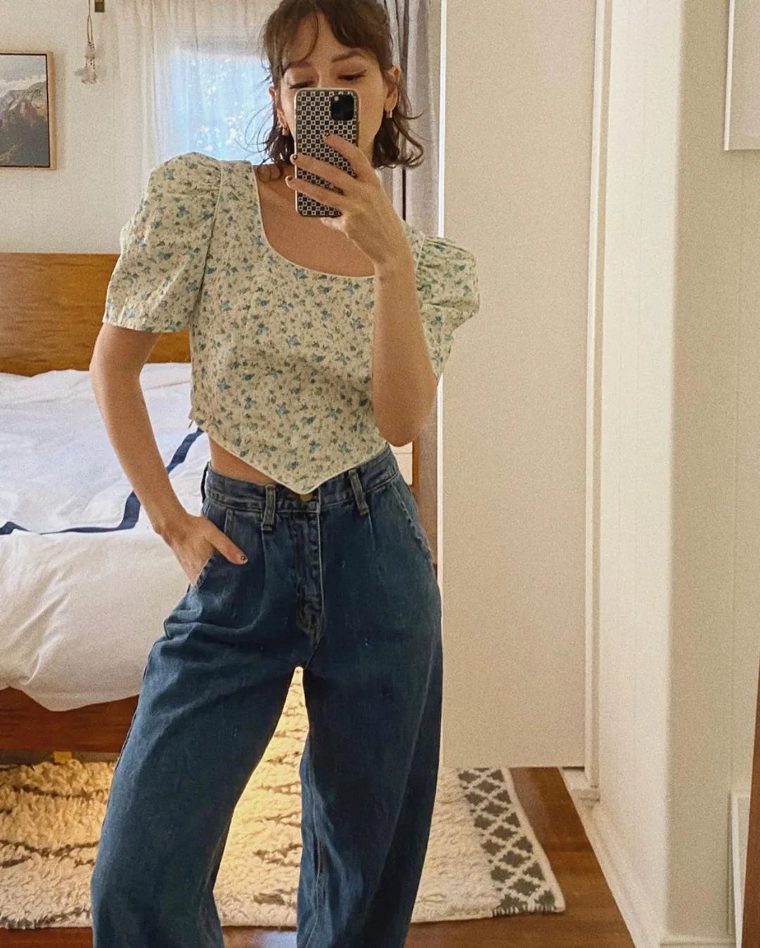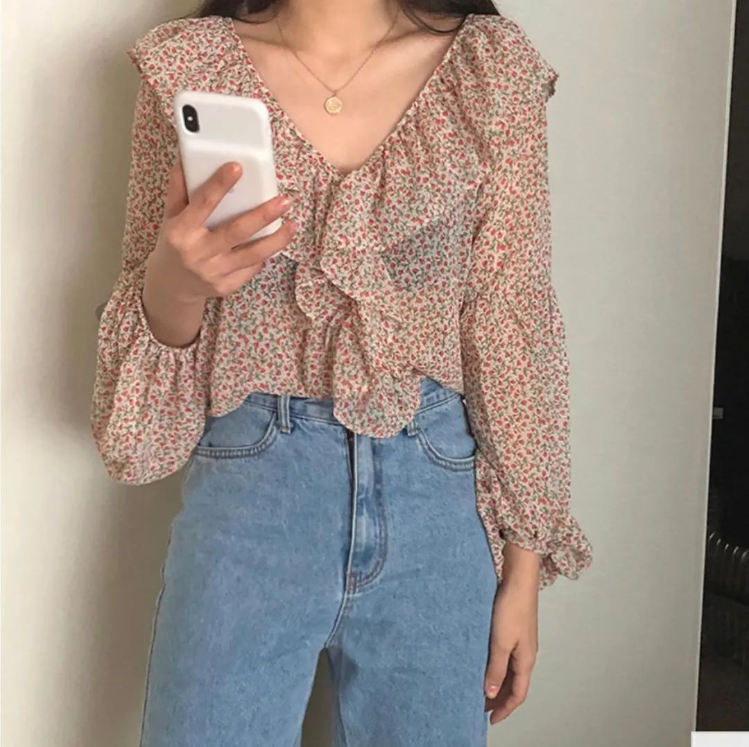 总结一下想要穿搭出法式感可以选择V领、收腰、泡泡袖、碎花任一元素的衬衫,搭配方案就是怎么随性舒适怎么来!