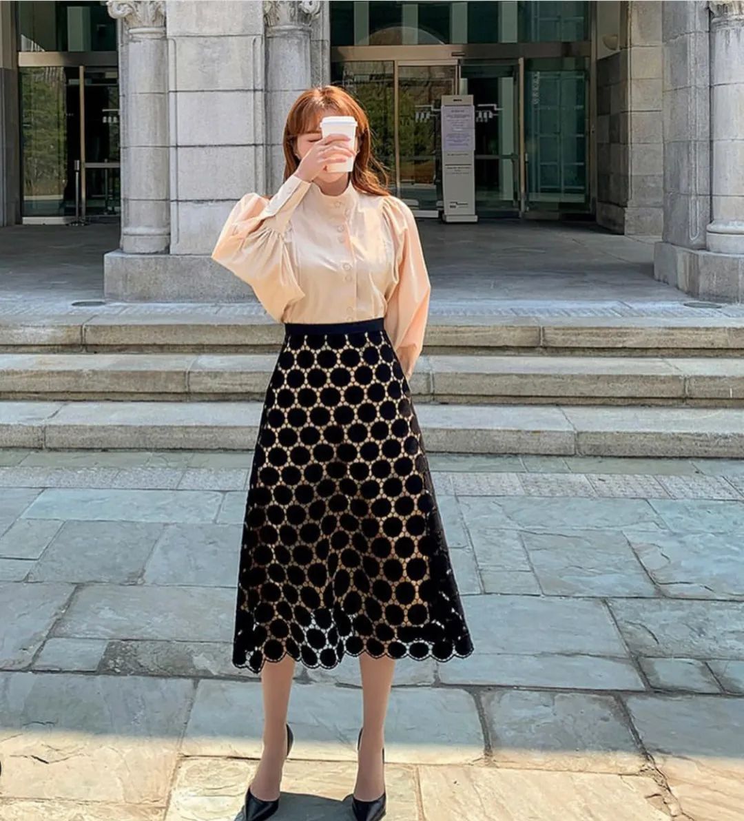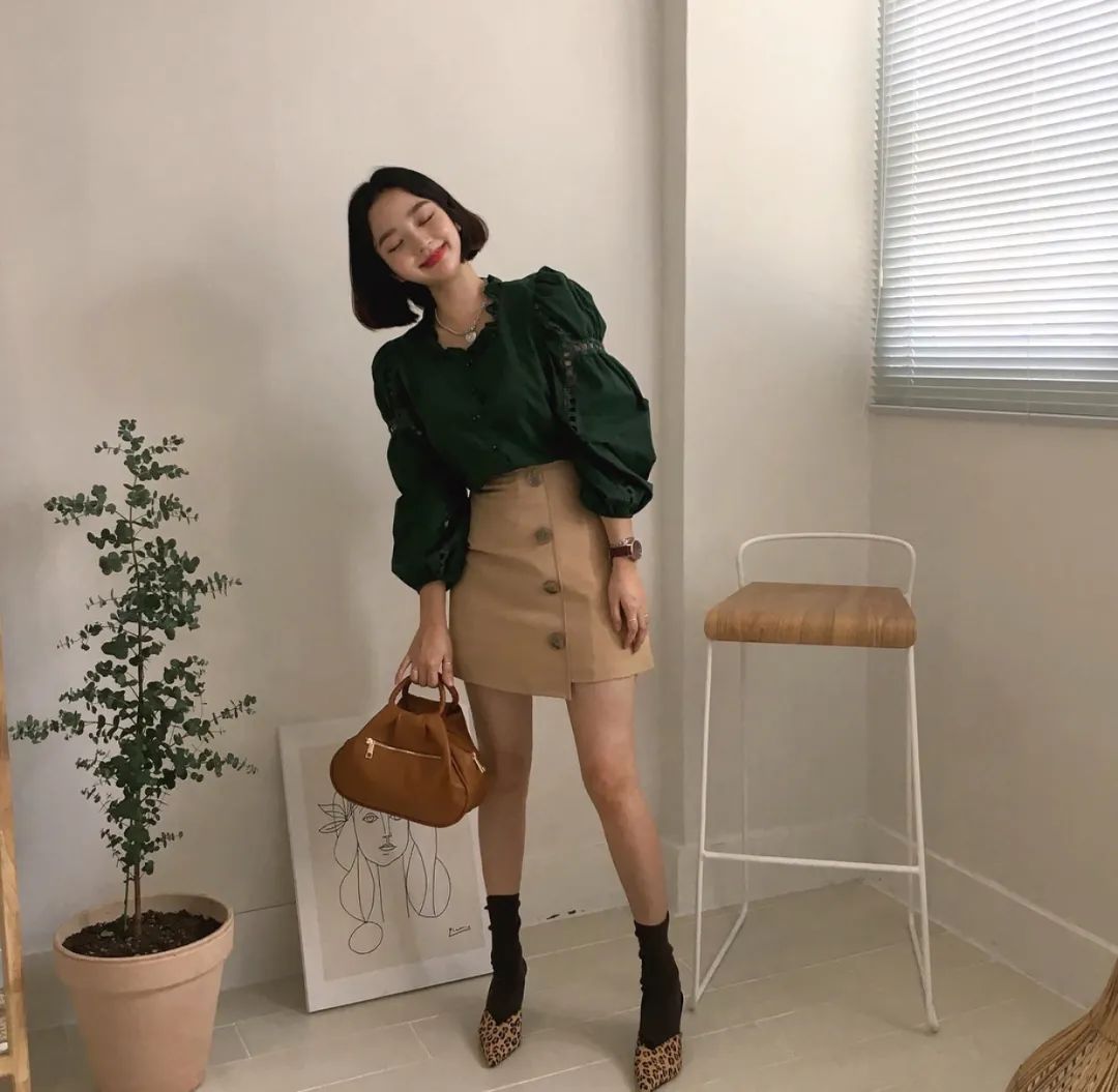 法式衬衫搭裤子是随性自然,搭裙子就又是甜美烂漫了。