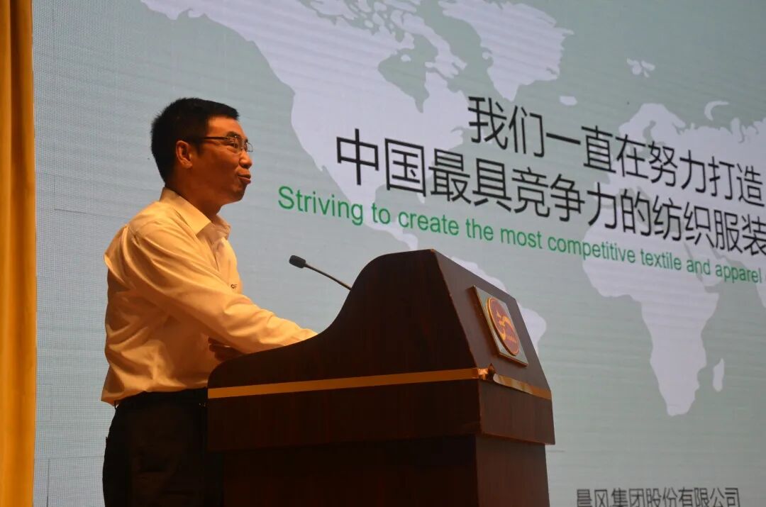 晨风集团高级顾问尹国新在大会上就公司产业链布局、晨风服装创意设计平台建设、可持续发展等方面进行了经验交流和分享。