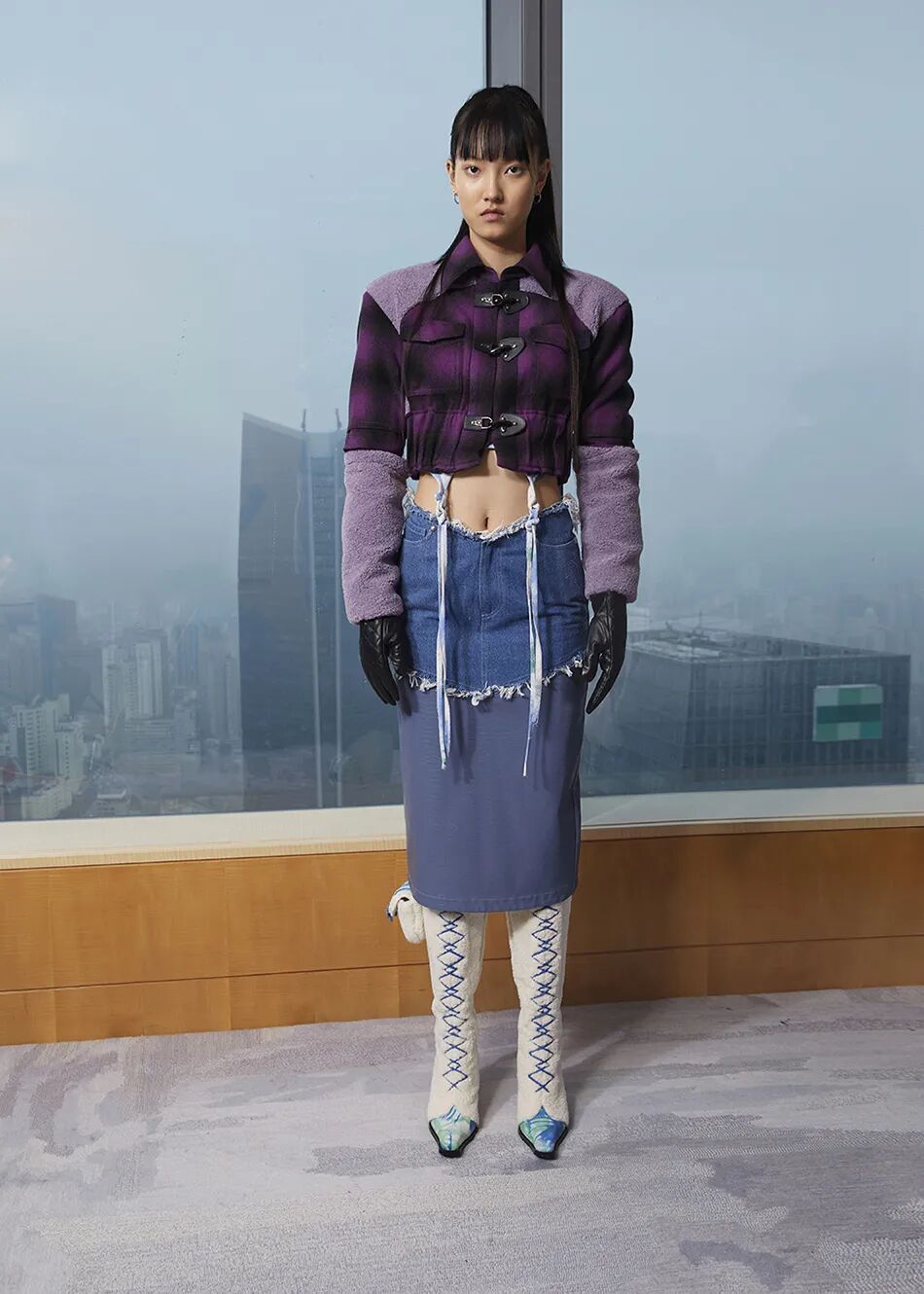 2021/22秋冬系列“虚拟场域生存,定位现实坐标”,设计师以此系列展现后疫情时代人们更加依赖数字空间,虚拟与真实世界逐渐融合的过程。
