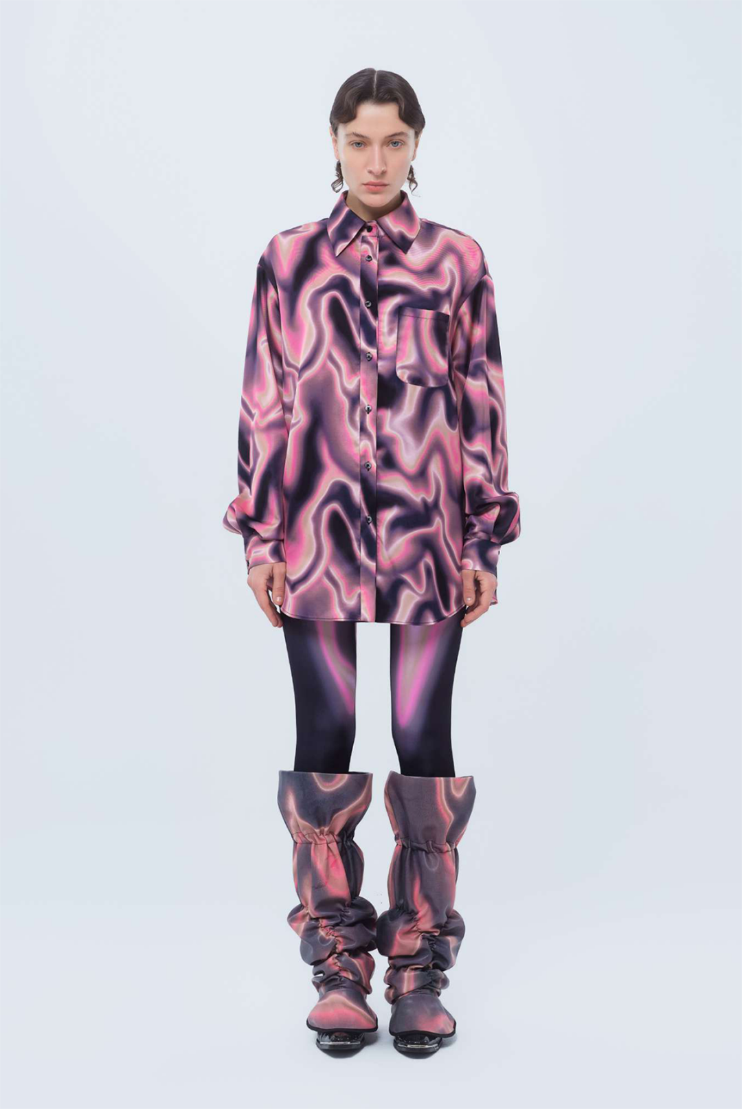 有如高低起伏音频的#digitalfilter数字滤镜印花图案,成为吸引年轻市场目光的最佳设计语言。设计师将数位印花运用在衬衫、羽绒服、打底裤、长靴上,创造独特的#matchingset成套穿搭造型。