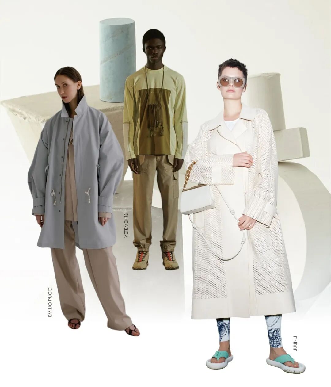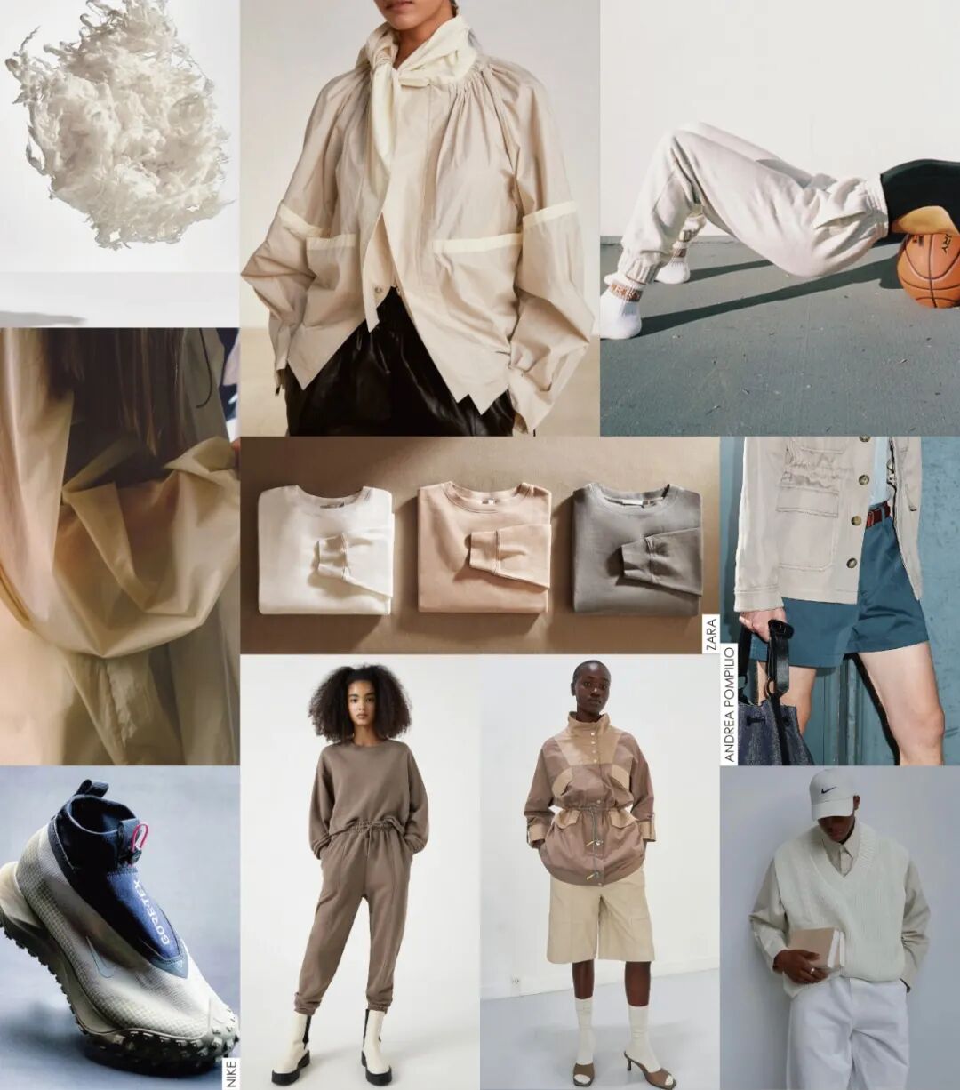 原生美学对话人与自然,考究面料与科技创新焕新日常单品。设计师多选取柔和轻盈的面料,微肌理表面的清透尼龙用于制作宽松量感的春季外套,透气性优越的夏季棉布为基础裤装及夹克带来最优选择,细洁针织融合舒适性和精致感,升级居家通勤多用风格。沉稳的褪色感中性色带来亲切、含蓄及熟悉感,展现舒适的同时增添精致格调。设计崇尚返璞归真,未染原色仍是关键,配合自然肌理带来视觉上的轻盈感。