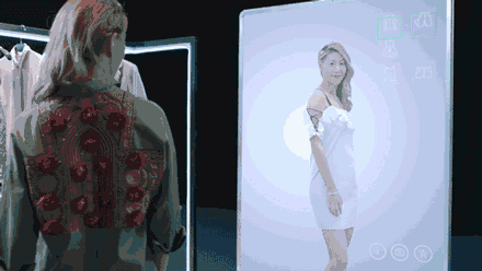 其中能够自动识别人脸、穿衣试衣的AR试衣技术屡见不鲜。AR试衣镜通过红外深度摄像头识别试衣人员的人体姿态,进行3D建模,还原真实人体形态,并通过5G网络连接云端的服饰模型数据库,购买人员站在试衣镜前,就可以快速试穿各色最新服饰。这体验感让人直呼“真是黑科技呀!”