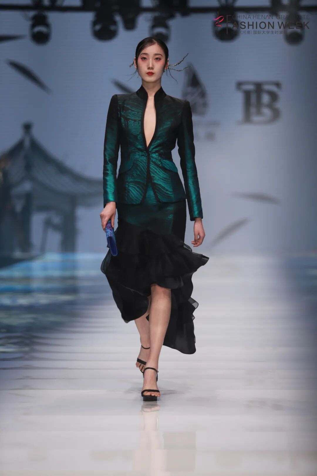 郑州市副市长孙晓红宣布2021中国(河南)国际大学生时装周开幕郑州市副市长孙晓红宣布2021中国(河南)国际大学生时装周暨青年时尚创意文化节开幕之后,开幕大秀正式拉开了帷幕,线上线下500万时尚达人同时在线观秀!百余年来血液中一直流淌着高定基因的上久楷,携手高级定制设计品牌薄涛制衣,在本季时装周中上演了一场围绕黄河文化主题进行创作、将非遗元素融入其中的精美大秀。抛弃了繁复冗赘的符号堆砌,非遗宋锦面料加上贴合的剪裁,行云流水般的飘逸流畅,将女性绰约多姿诠释得淋漓尽致。大师秀后,中原工学院、郑州工商学院等院校优秀设计作品进行了联合秀,大师与新秀,经典与传承,交相呼应,同台竞艳。