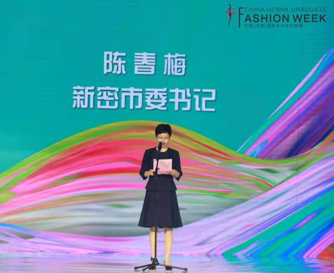 中国纺织品进出口商会副会长王宇,中国服装协会常务副会长杨金纯,中国纺织服装教育学会会长倪阳生,中国服装设计师协会副主席谢方明,中国美术学院纺织服装研究院院长吴海燕,河南省政府原副省长、清华大学校友会名誉会长贾连朝,河南省委宣传部副部长方启雄,省工业和信息化厅厅长李涛,省商务厅巡视员郭海燕,共青团河南省委巡视员韩冰,河南日报报业集团有限责任公司副总经理、河南商报社社长关国锋,河南省人大教科文卫委原主任、大学生时装周文化顾问夏林,河南省人社厅处长张伟,河南省教育厅主任李超,郑州市政府副市长孙晓红,郑州市人社局局长李德耀,郑州市文旅局局长李芳,焦作市委常委、修武县委书记郭鹏,新密市委书记陈春梅,新密市委副书记、市长程洋,新密市政协主席王鲁明,新密市产业集聚区管委会主任史启新,市委办主任胡光程,副市长李磊、齐智慧,河南省服装行业协会会长李刚,河南豫发集团有限公司董事会主席王建树、董事长王建勋、总经理郝明,以及来自俄罗斯、波兰、埃塞俄比亚、波兰、巴哈马、摩洛哥等国际商务代表,商丘市、长垣市、修武县等县市以及全国服装学院代表、商协会代表、国内服装龙头企业代表出席当晚的盛会。新密市委书记陈春梅在致辞中表示,近年来,新密市围绕“打造美丽经济、建设时尚之都”的目标,以全省唯一以服装为主导产业的省级产业集聚区为依托,积极推动时尚文化产业创新发展。中国河南国际大学生时装周暨青年时尚创意文化节的连续成功举办,为时尚文化产业发展提供了重要交流平台和展示窗口,得到了社会各界的广泛认可。目前,该活动已经成为中部地区最具影响力、最具规模的服装专业展会之一,引领推动着全省时尚文化产业蓬勃发展。河南省工信厅厅长李涛在致辞中指出, 服装是河南省基础产业和优势产业,河南是全国服装制造大省,未来河南服装产业要不断升级,向绿色、智能化方向发展,进入国际大循环,焕发勃勃生机。时装是文化载体,时装周对于河南创意文化产业发展起到了积极推动作用,我们要携手共进,紧扣河南服装万亿产业目标,升级大时尚,发展大产业,大力推动服装时尚与创意产业全面发展。中国服装协会常务副会长杨金纯在致辞中表示,时至今日,中国服装产业依然是全球最大的生产国、消费国和出口国,从今年一季度各方面数据来看,中国服装产业值得大家信赖,未来可期。他期待黄河文化、中原文化在东方美学里有更多的表达和呈现,期待河南能为纺织服装行业人才领域输出更多优秀创意设计人才、优秀设计师、制版师,期待河南郑州、新密能在全国优质制造基地的基础上,继续承载河南多年来沉淀的中原文化底蕴,在下阶段中国纺织服装产业发展的基础上做好中原引领,持续打造中原文化原创新高地,引领纺织服装产业新发展。中国纺织品进出口商会副会长王宇在致辞中表示,这次来河南对不少企业进行调研后,有三个非常深刻的体会,一是政府对河南服装产业发展支持力度无与伦比,二是河南企业家积极进取的精神无与伦比,三是行业创新的力度无与伦比。河南的纺织服装产业必定会迎来更好的发展。